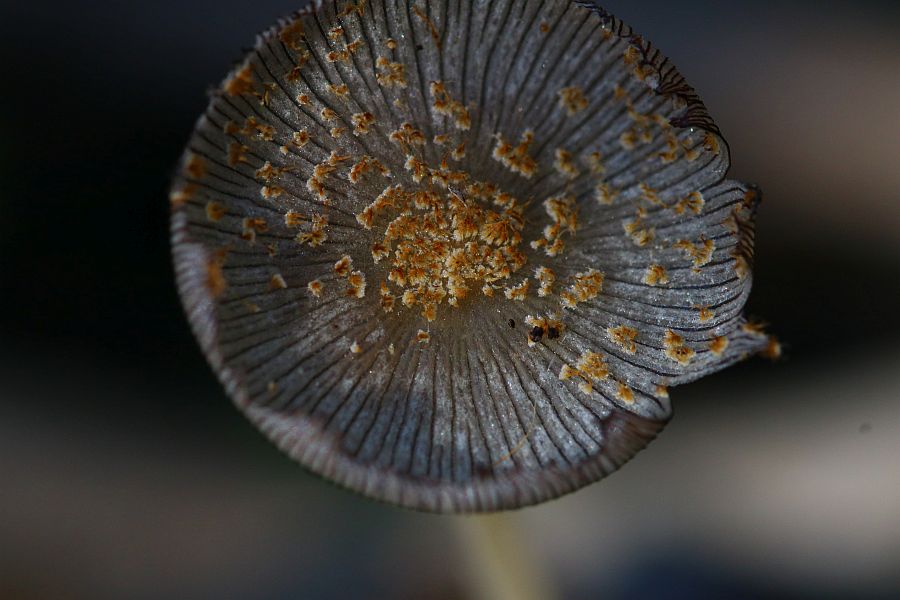 I found this Parasola sp. with distinct veil particles on the pileus. Unfortunately I was on weekend holiday and the specimen disintegrated 3 days later when back home. Is there a specific Parasola sp. which forms these veil flakes?. I found similar images of P. plicatilis that do that, but maybe its not a specific character.