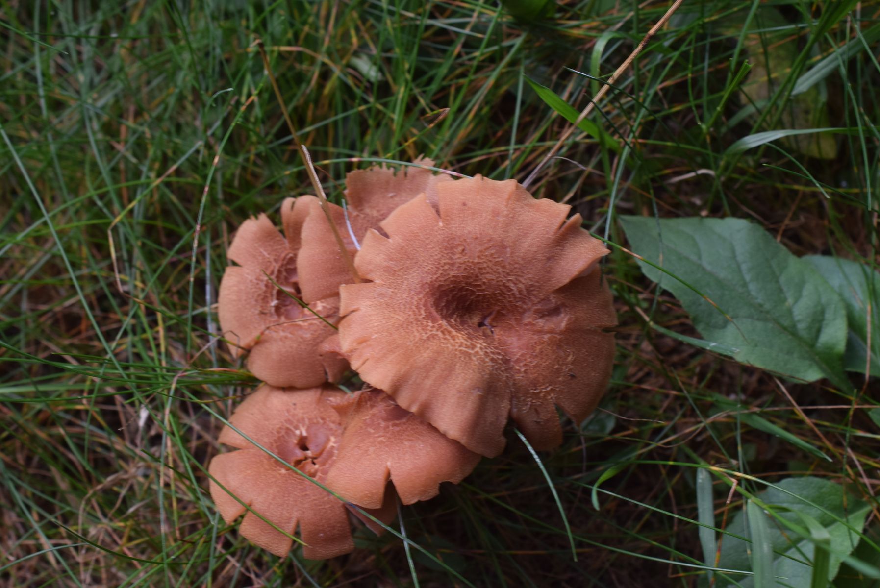 Zudem sollte man bei der Pilzbestimmung den Fruchtkörper komlett mit Stielbasis entnehmen. Irgendwelche Verrenkungen für ein Foto zu machen weil man den FK nicht entnehmen möchte bringt nix und außerdem sind die roten Lacktrichterlinge oft makroskipisch schwer unterscheidbar noch dazu wenn man die Stielbasis nicht sieht um z.B. Laccaria bicolor vermuten zu können.