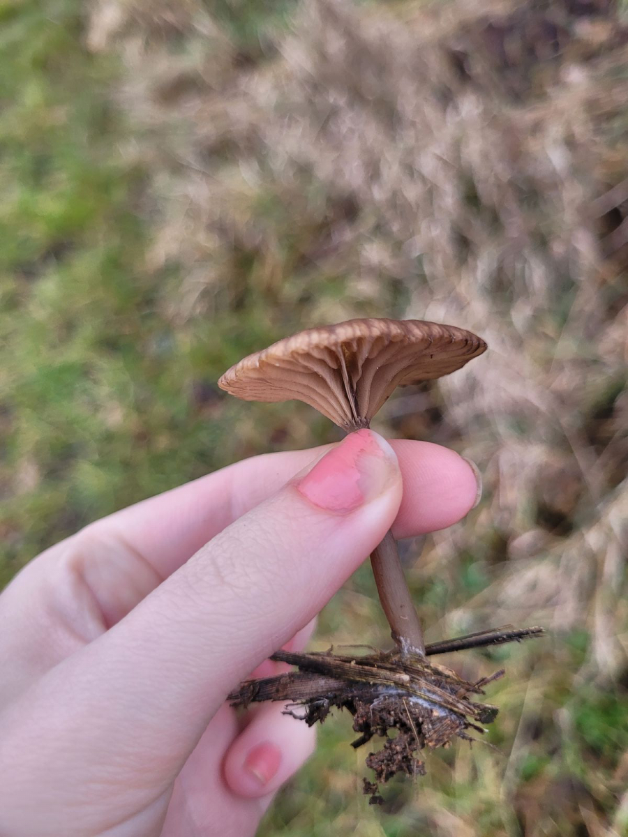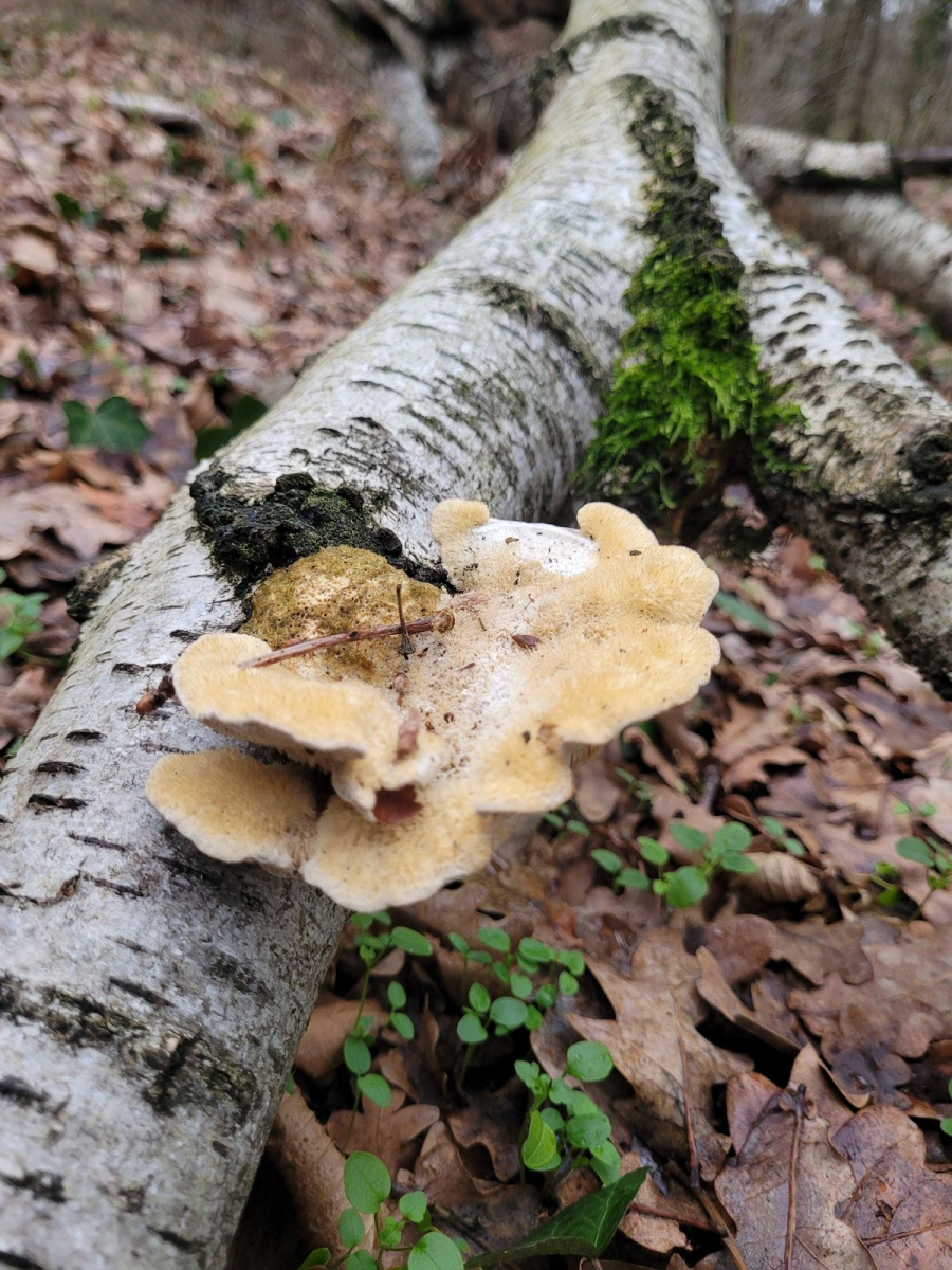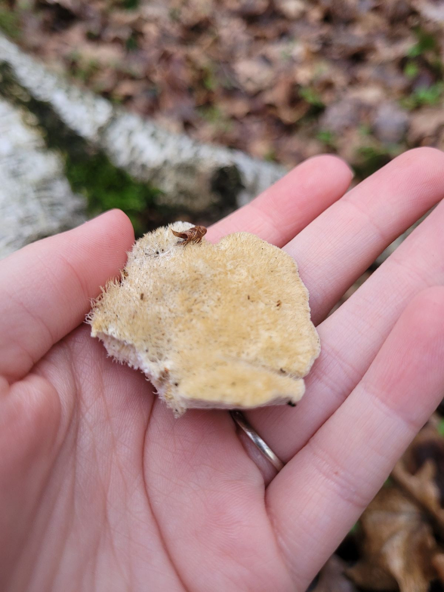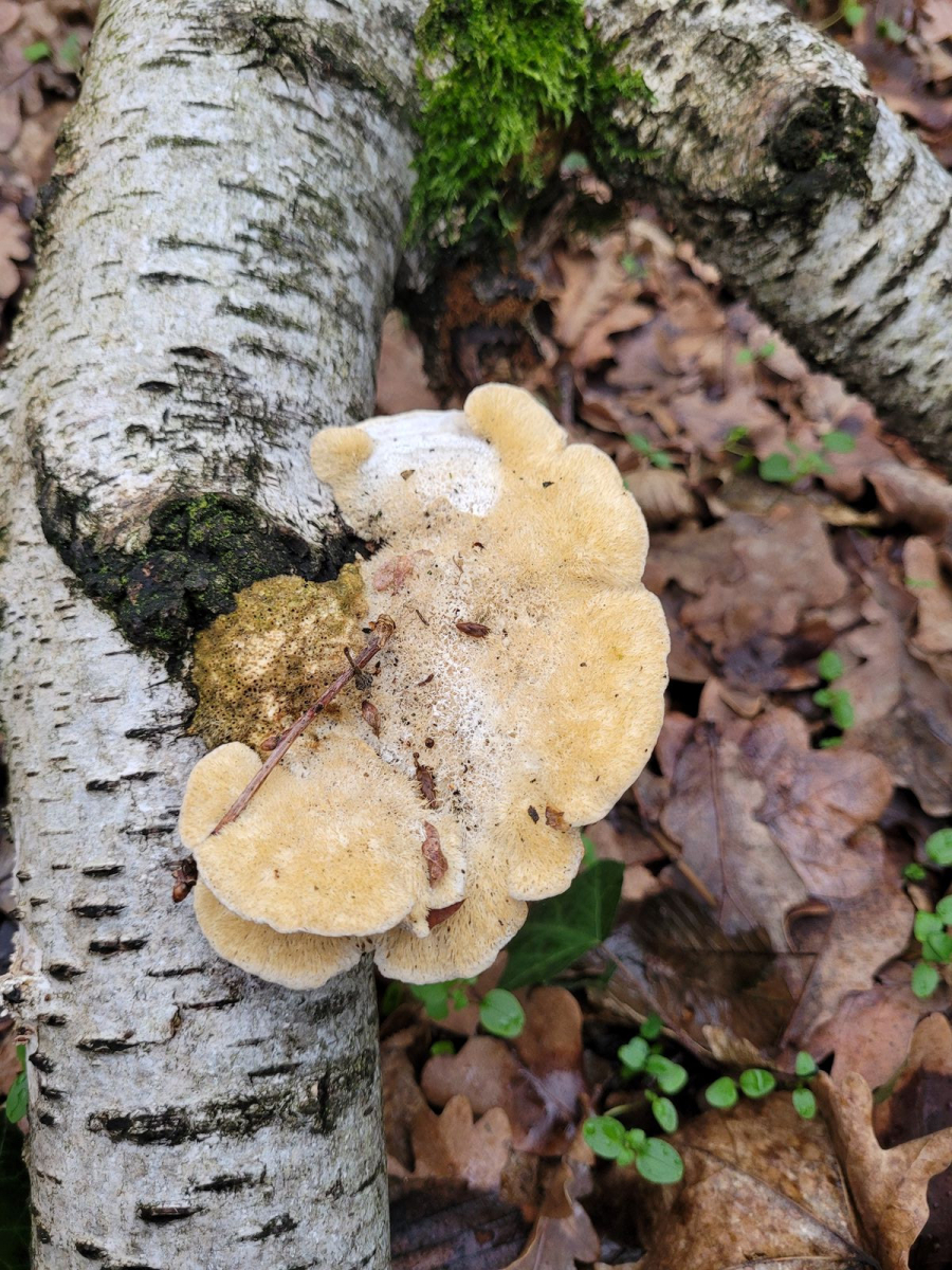 Gelbe Tramete und unbekannter brauner Trichterling?