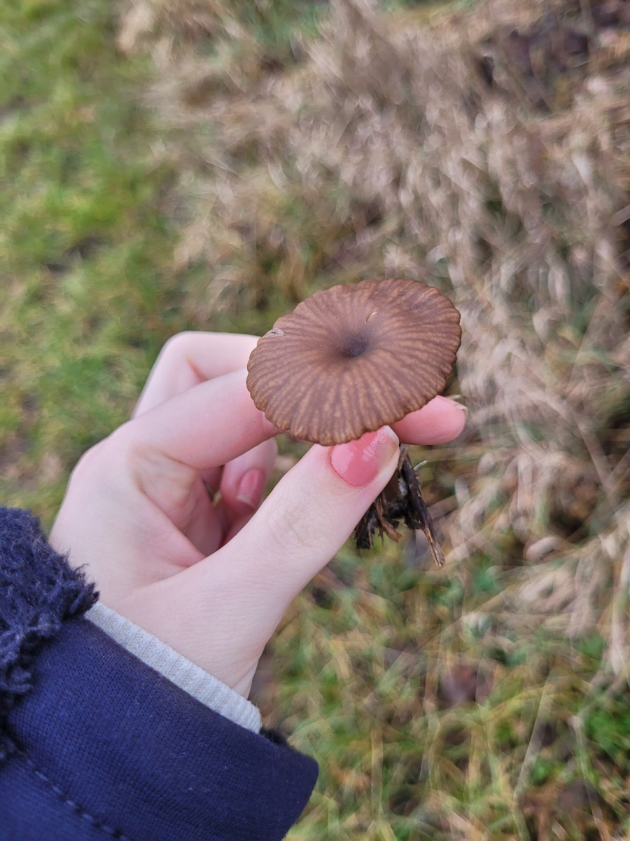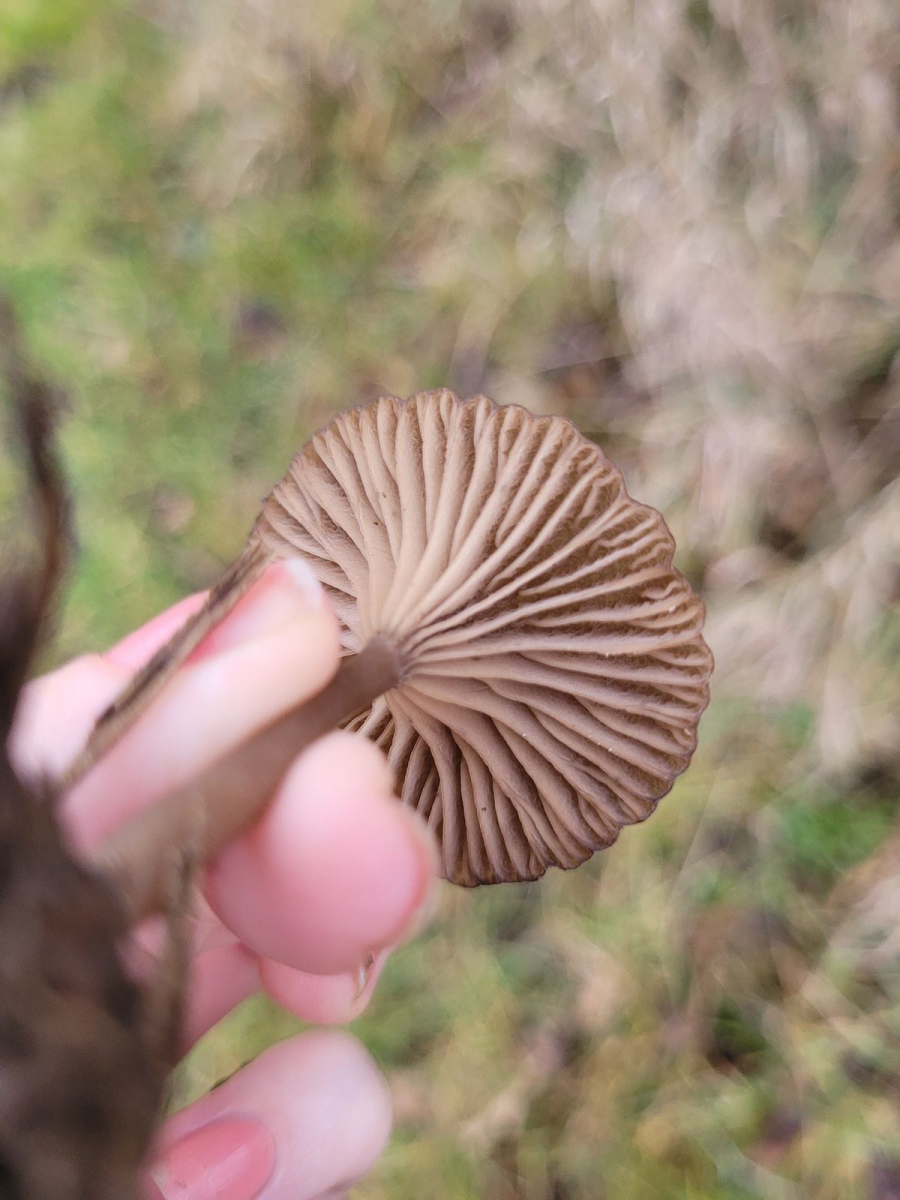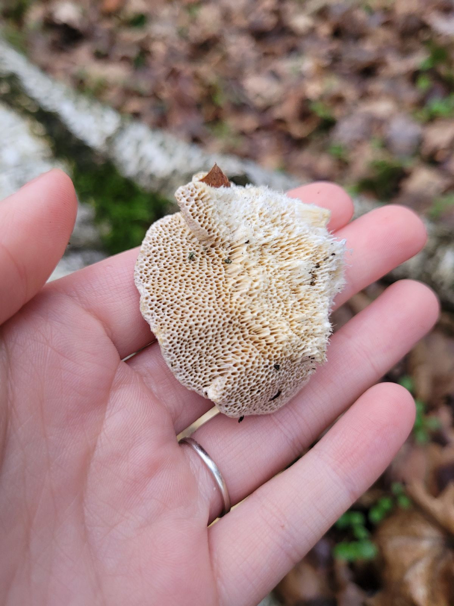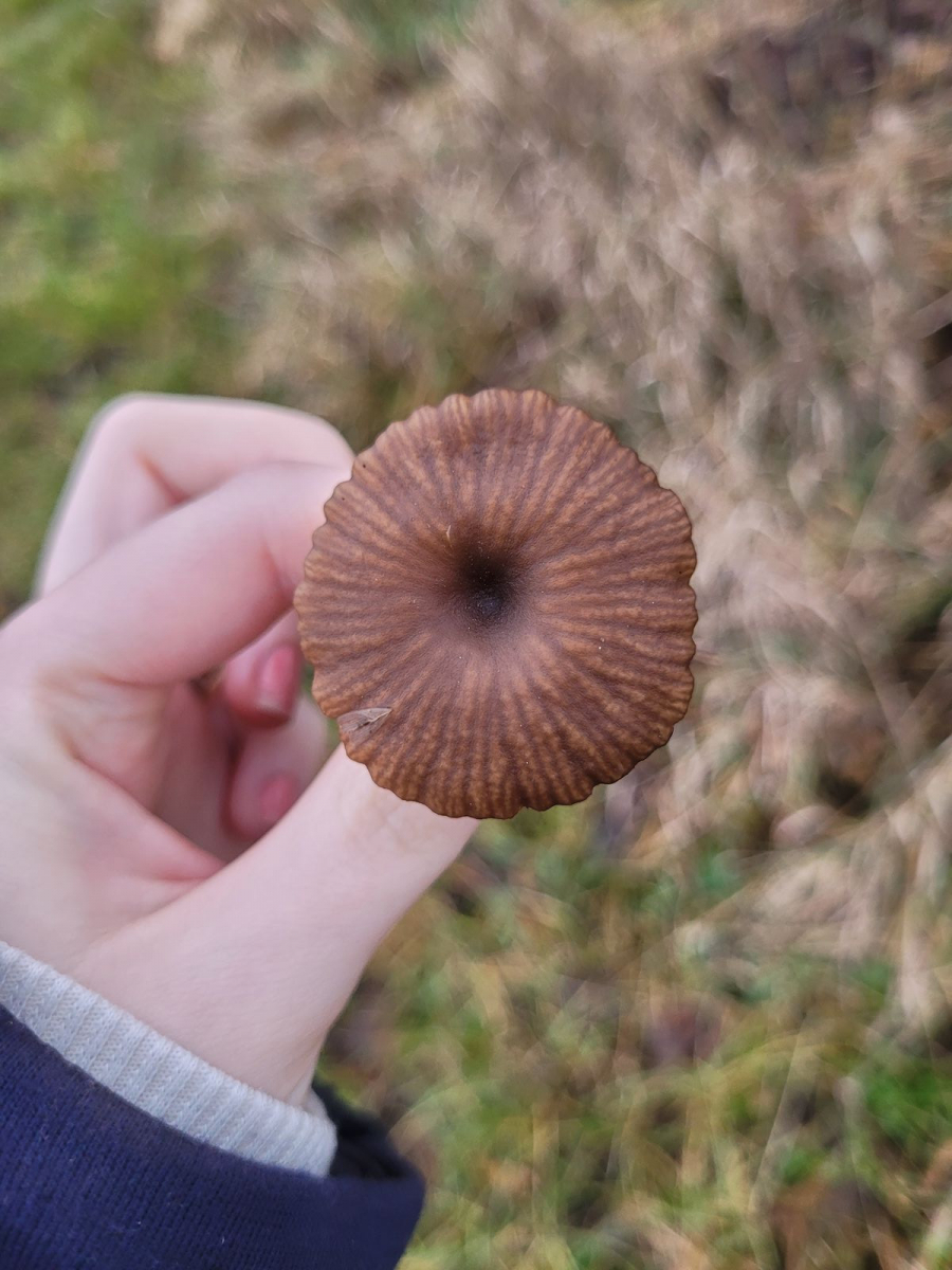 Gelbe Tramete und unbekannter brauner Trichterling?