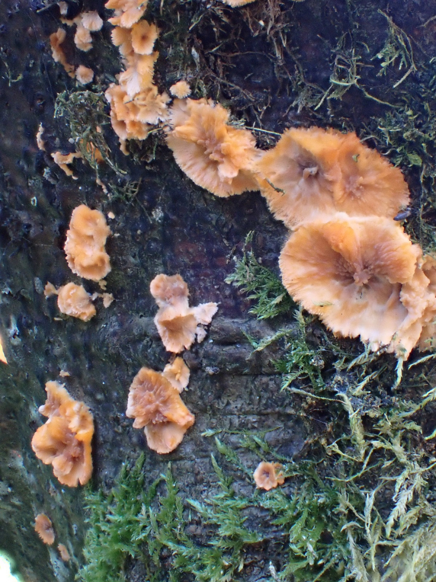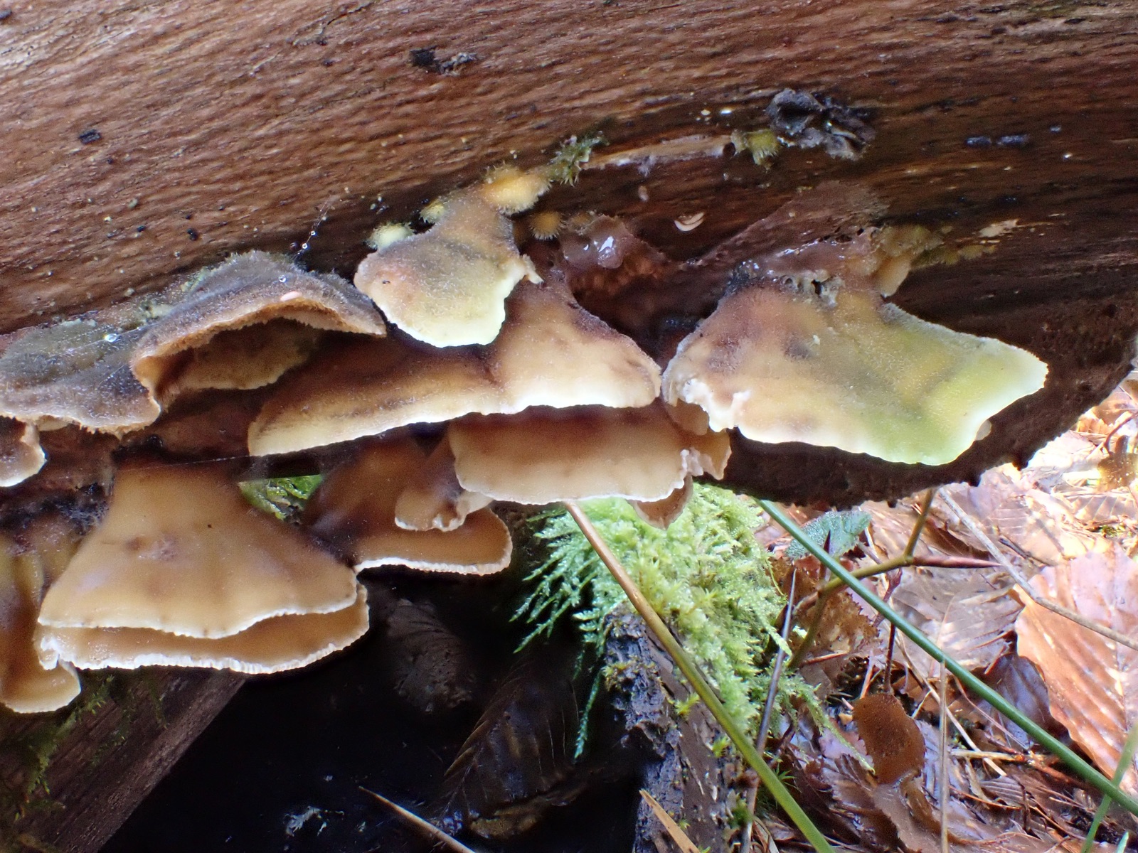 Trametes versicolor, Trametes hirsutum, Stereum hirsutum, Bjerkandera adusta, Plicaturopsis crispa, Pleurotus ostreatus, Irpex lacteus (?), Daedaleopsis confragosa, Exidia nigricans, Hapalopilus rutilans, Tubaria furfuracea, Ascocoryne sarcoides, Schizophyllum commune, Phlebia radiata, Lentinus brumalis, Picipes badius, Fomes fomentarius, Jackrogersella multiformis, Pycnoporus cinnabarius, Badhamia utriculare. Panellus serotonis war auch noch vertreten, ohne Bild.