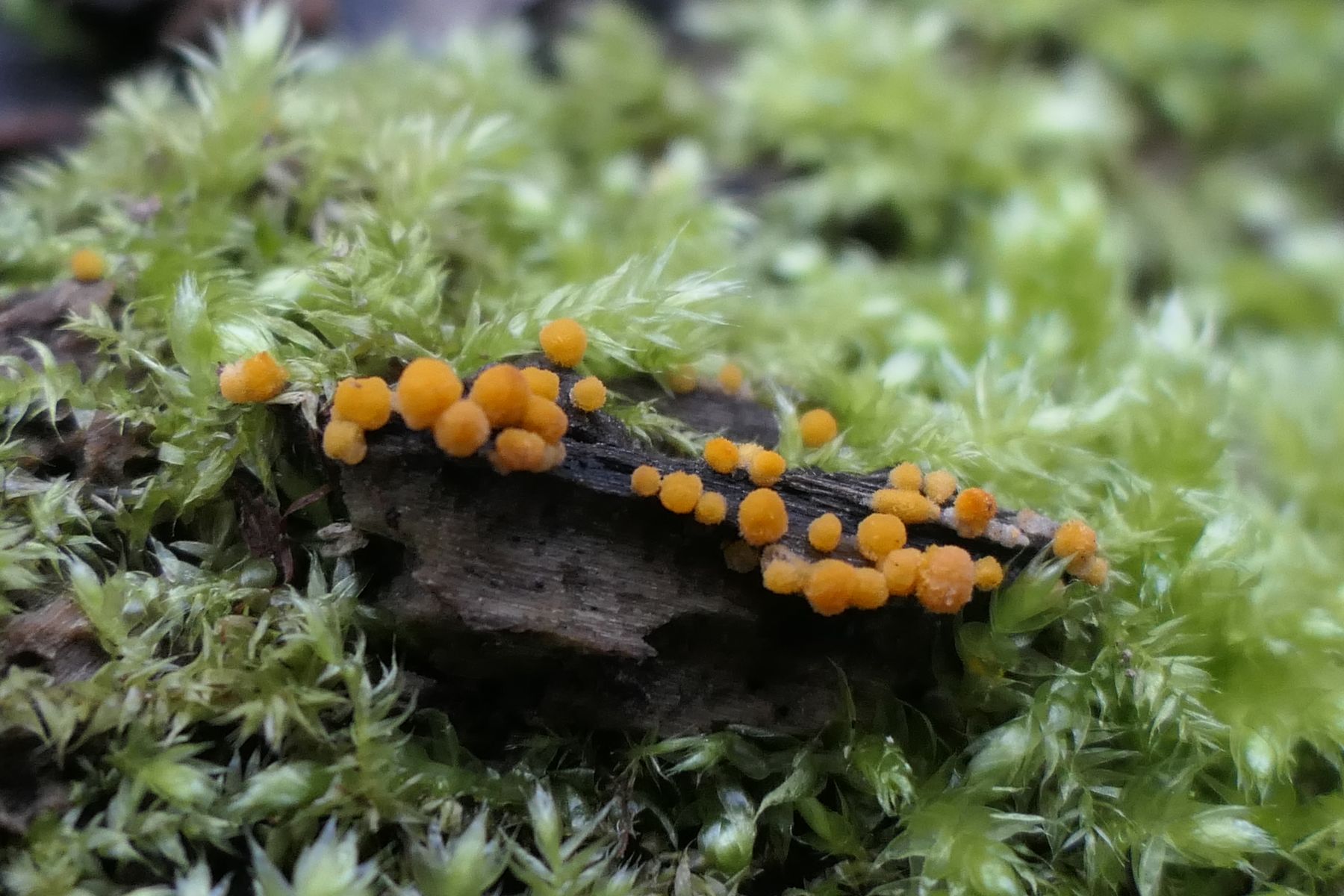 Ebenfalls sehr wahrscheinlich aus der Ecke der Schleimpilze bekomme ich diesen hier gar nicht zugeordnet. Auf Holz: