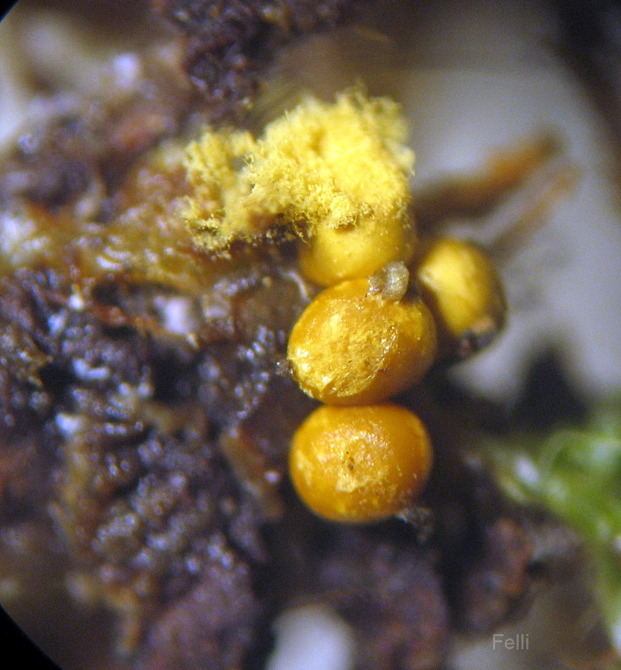 Auf Grund des gelblichen Capilitiums und der feinwarzigen Sporen könnt ich mir Trichia contorta v. attenuata vorstellen.