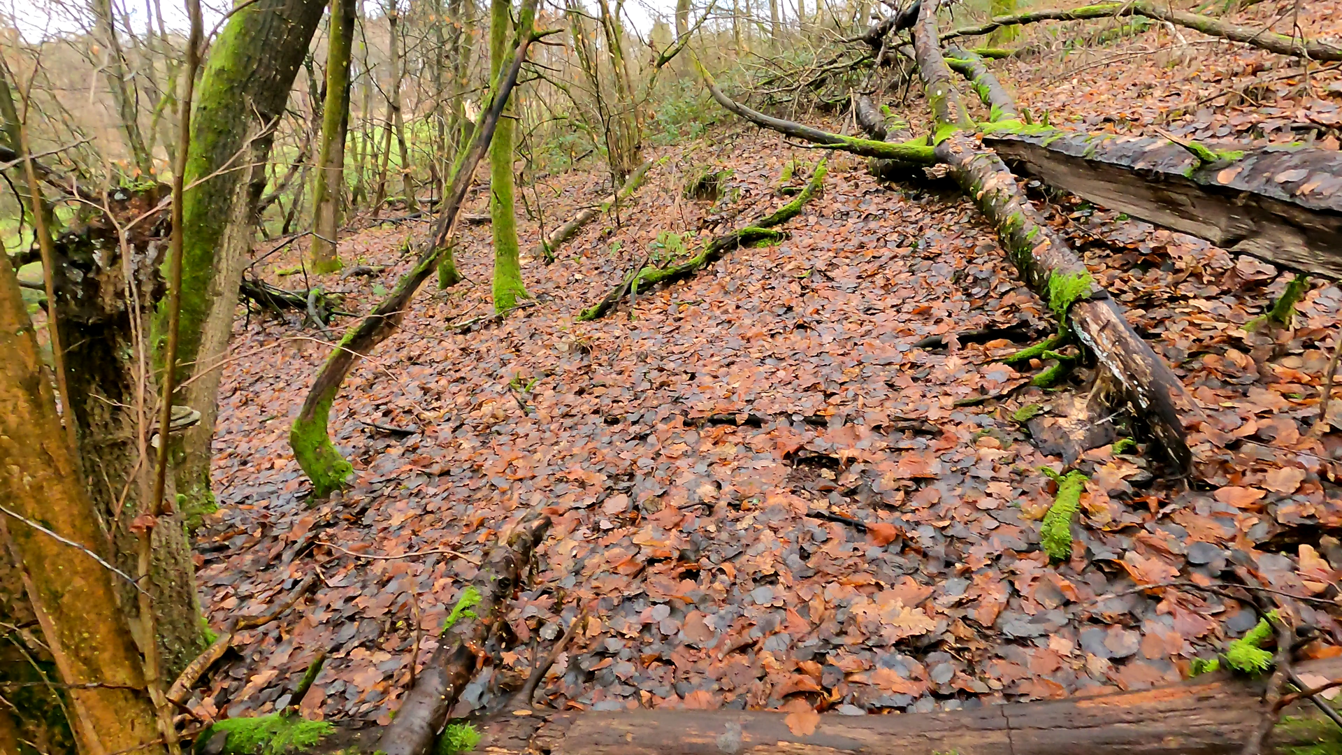 Heute war ich mal in einem Waldstück was sich durch umfallende Bäume auszeichnet.