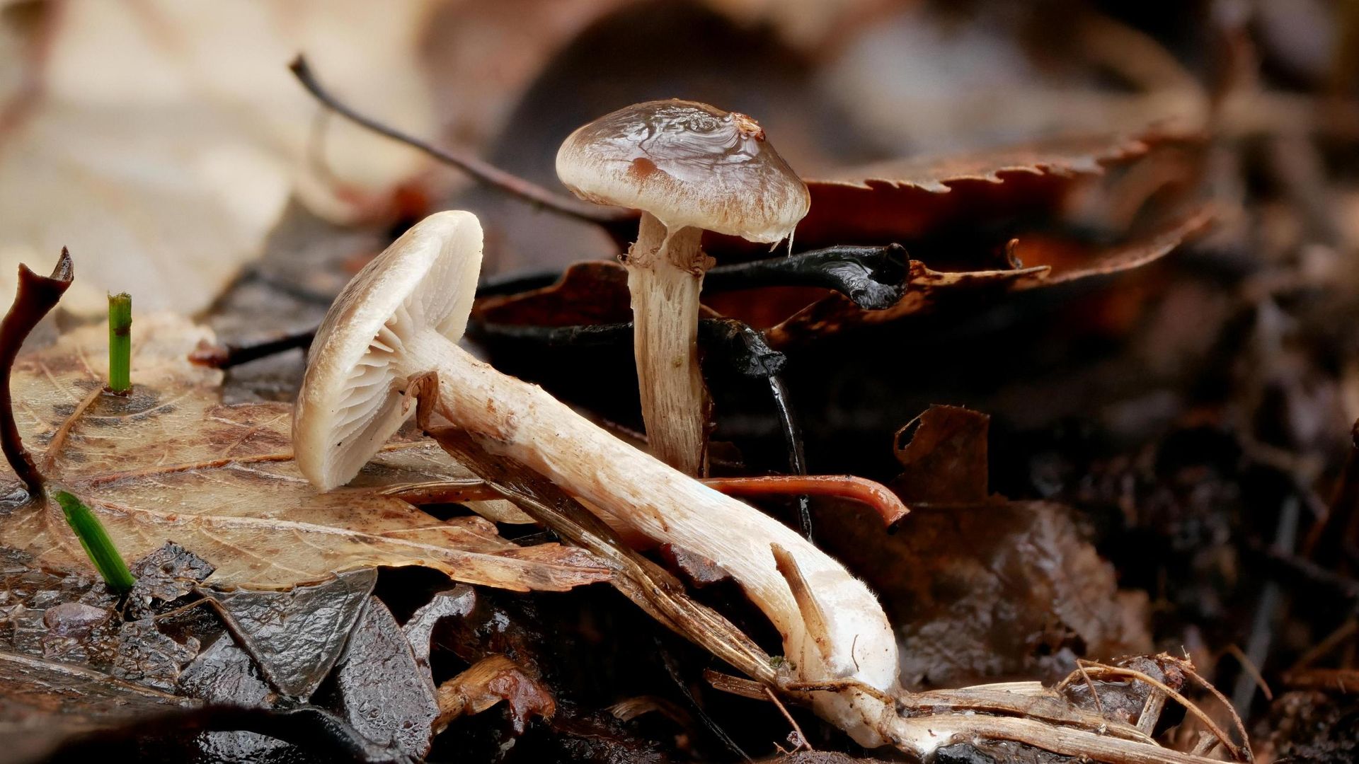 1) wie jeden Winter hier im Laub Blätter-Scheinschüpplinge Phaeogalera oedipus - die haben aber auch noch andere Namen.