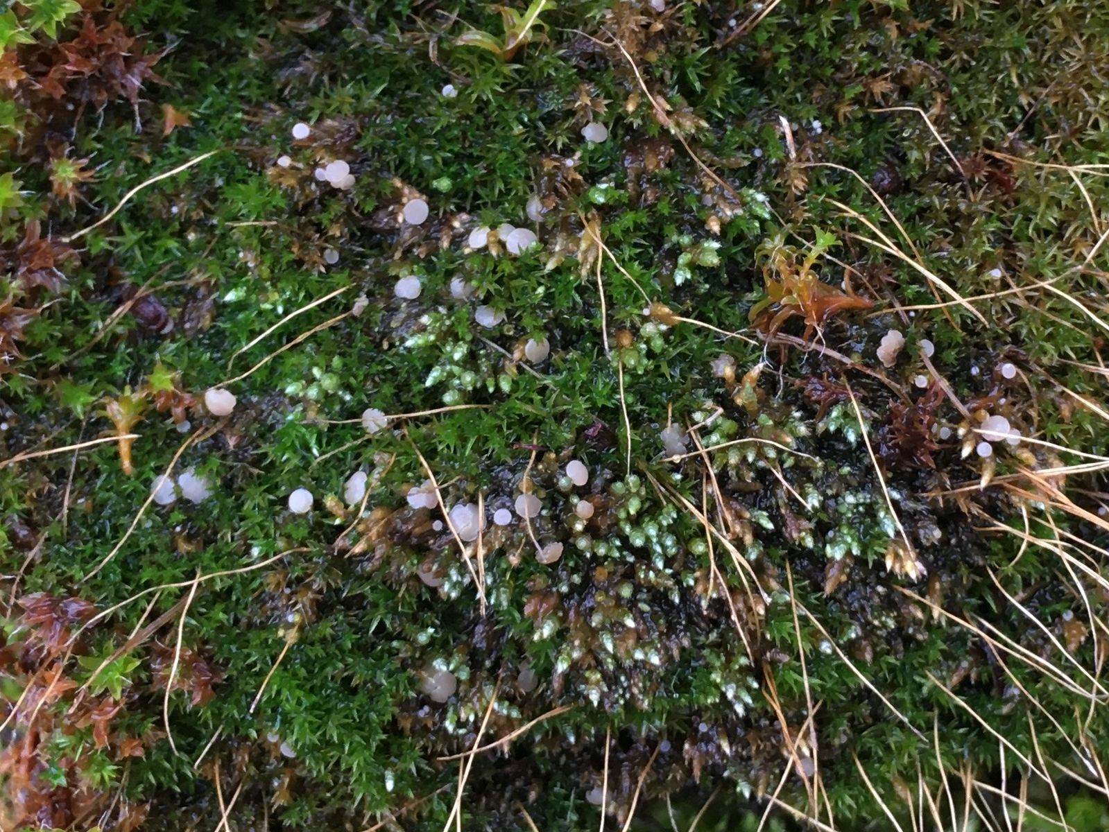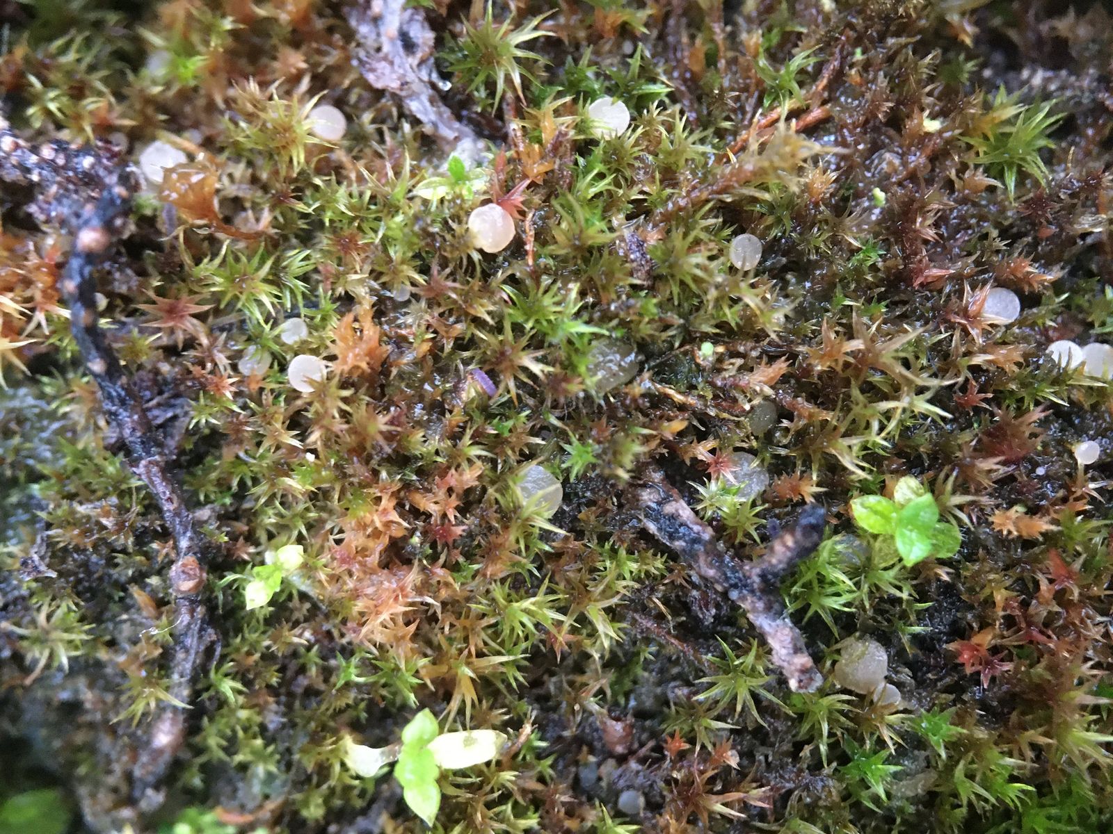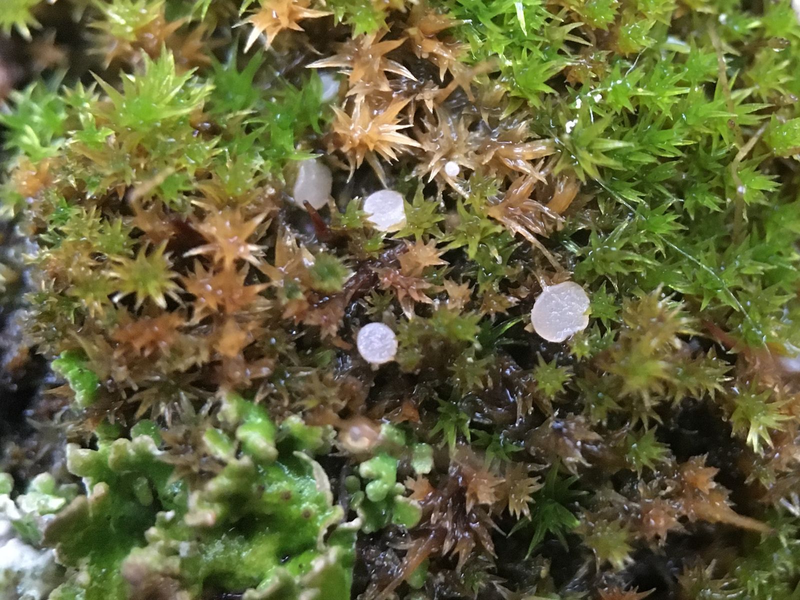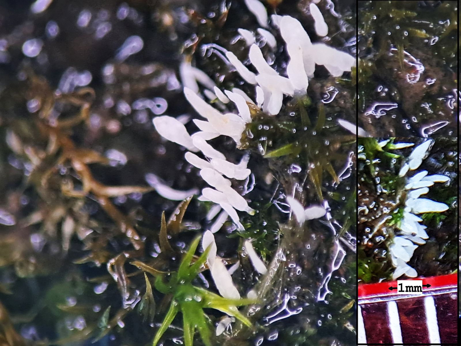 Dafür rauhe Mengen dieser kleinen weißen Becher, die ich als Bryoscyphus dicrani bestimmte.