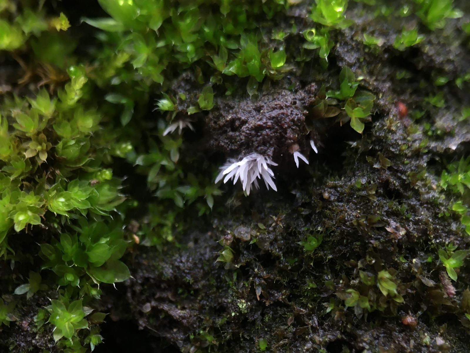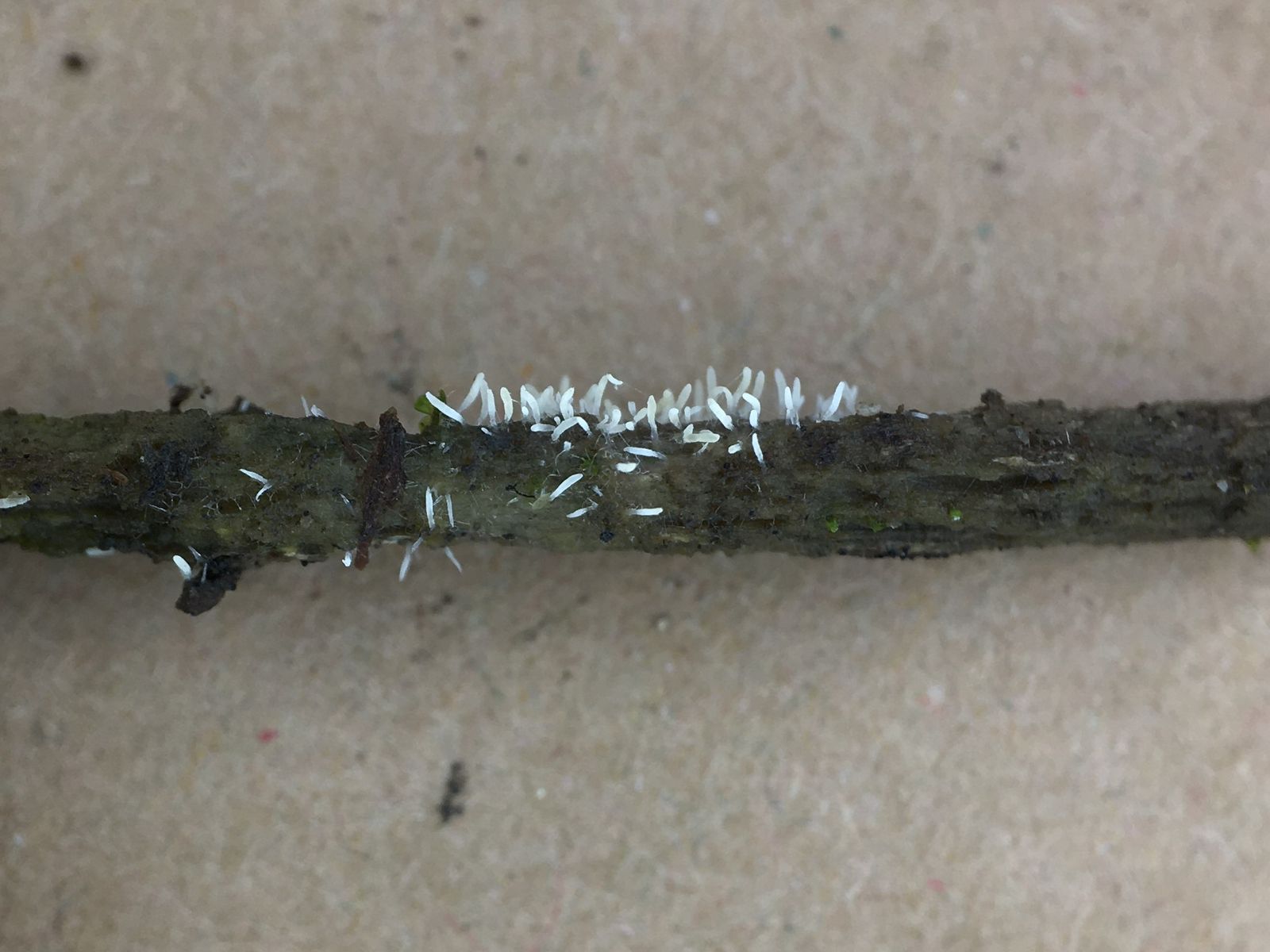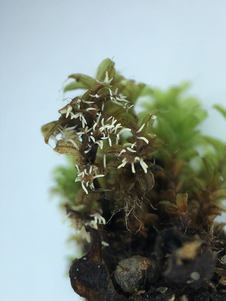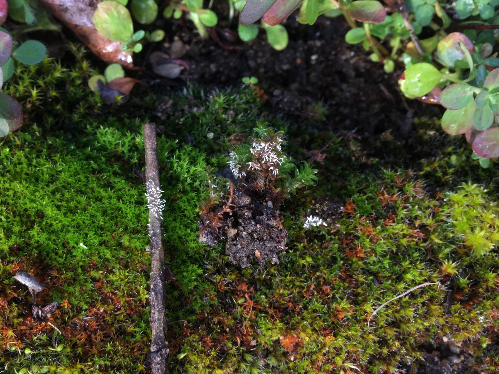 Dafür rauhe Mengen dieser kleinen weißen Becher, die ich als Bryoscyphus dicrani bestimmte.
