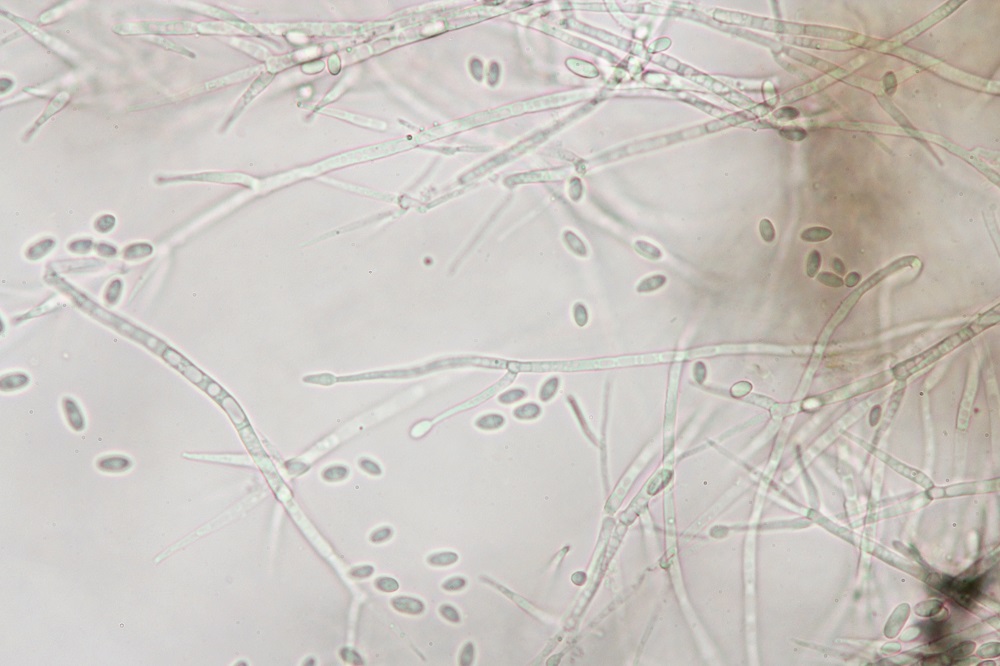 Der Befall ist wahrscheinlich eine Cladobotryum, die erstaunlich kleine Konidien hat.