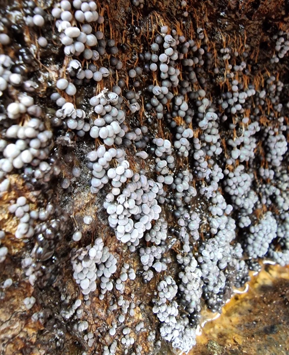 Kann mir wer auf die Sprünge helfen, was das sein könnte? Bin mir nicht sicher, ob es sich um Pilze, Insektengelege oder sogar etwas anderes, pflanzliches handelt.