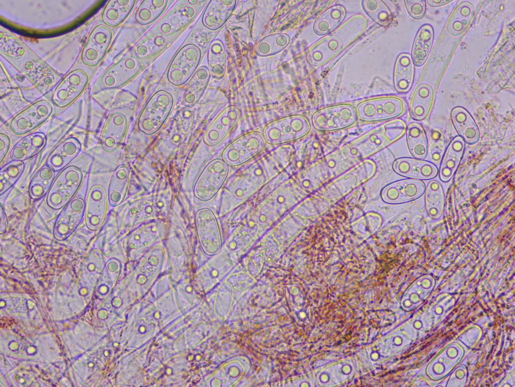 sehr ähnlich sind die Sporen von S. austriaca, die können auch eingedellt und mit zwei Tröpfchen daherkommen.