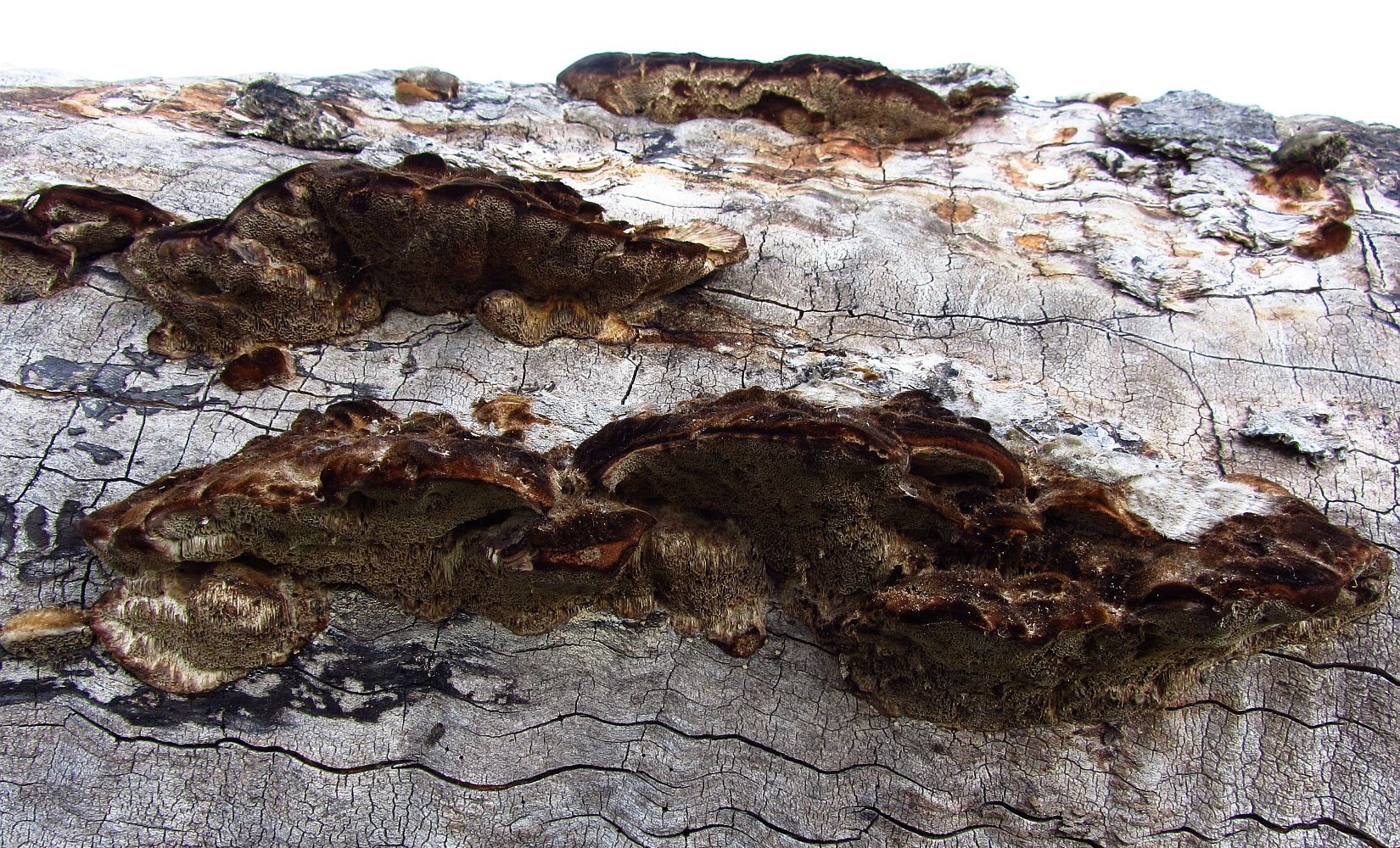 Auch das ist Trametes trogii (siehe Kontextfarbe zweites Bild ganz rechts), in diesem Fall an Pappel (vergesellschaftet u.A. mit Coriolopsis gallica, Lentinus strigosus, Lenzites warnieri), an einem ganz und gar sonnenexponierten Standort.