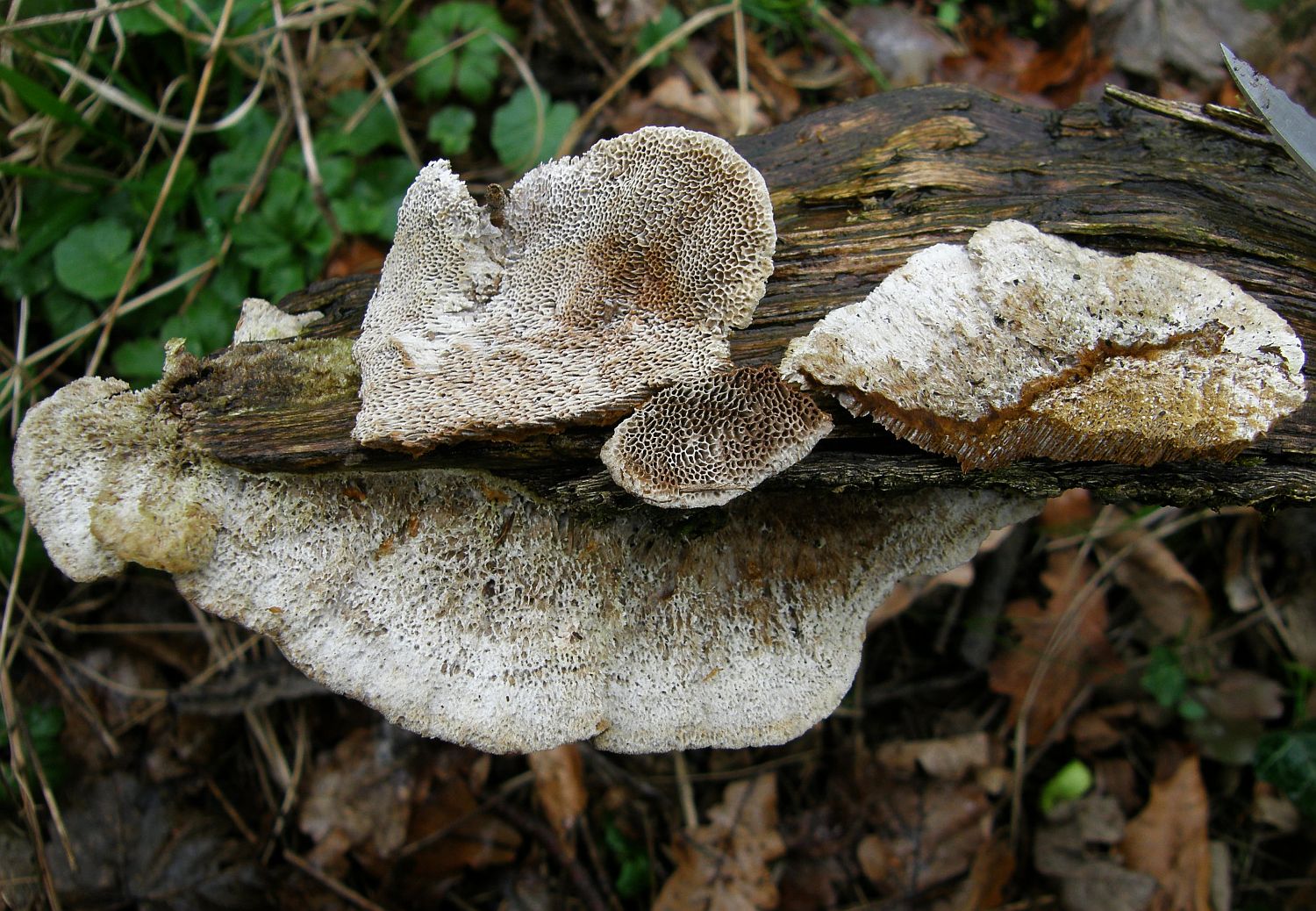 Trametes trogii = Blasse Borstentramete syn. Cerrena trogii (Berk.) Zmitr., 2001 (Synonym) und Cerrena trogii (Berk.) Zmitr., 2001
