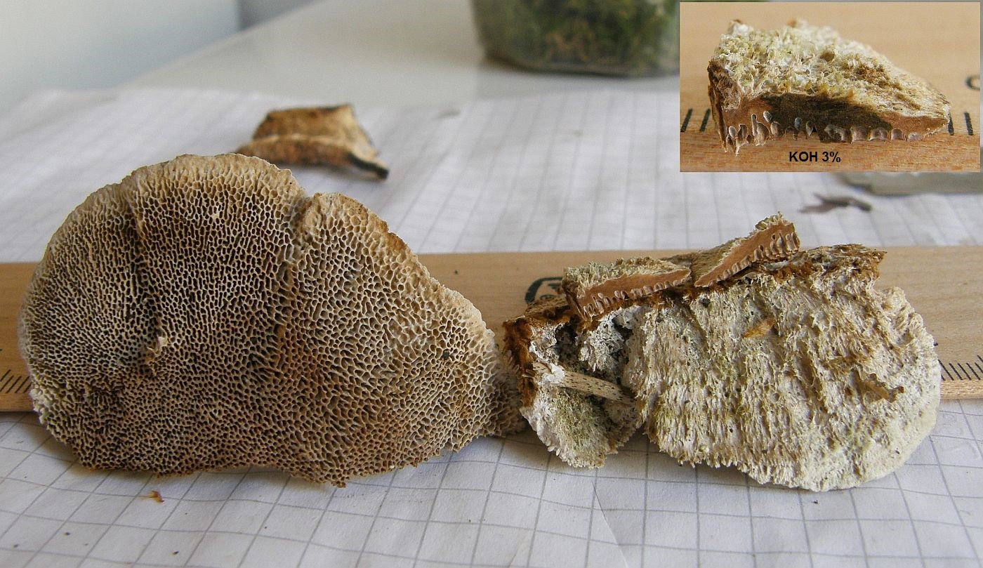 Relevant ist tatsächlich die Farbe im Inneren, also sowohl Kontext (Hutfleisch) als auch Trama (Röhrenfleisch). Die Fruchtkörper von Coriolopsis gallica sind meistens dünnfleischiger als die von Trametes trogii, aber auch das ist nicht ganz verlässlich. Auch die Farbe außen ist bei beiden Arten sehr variabel.
