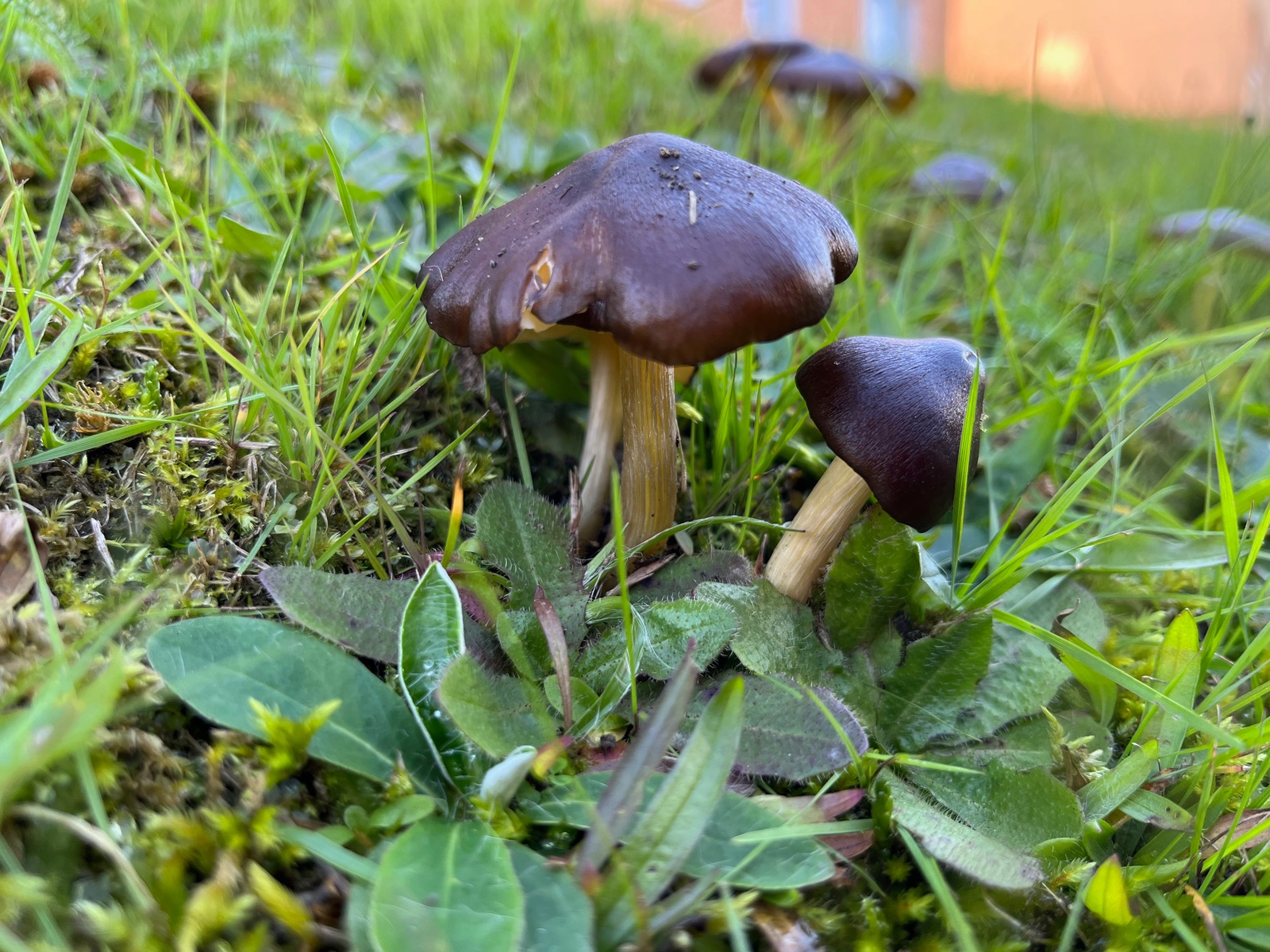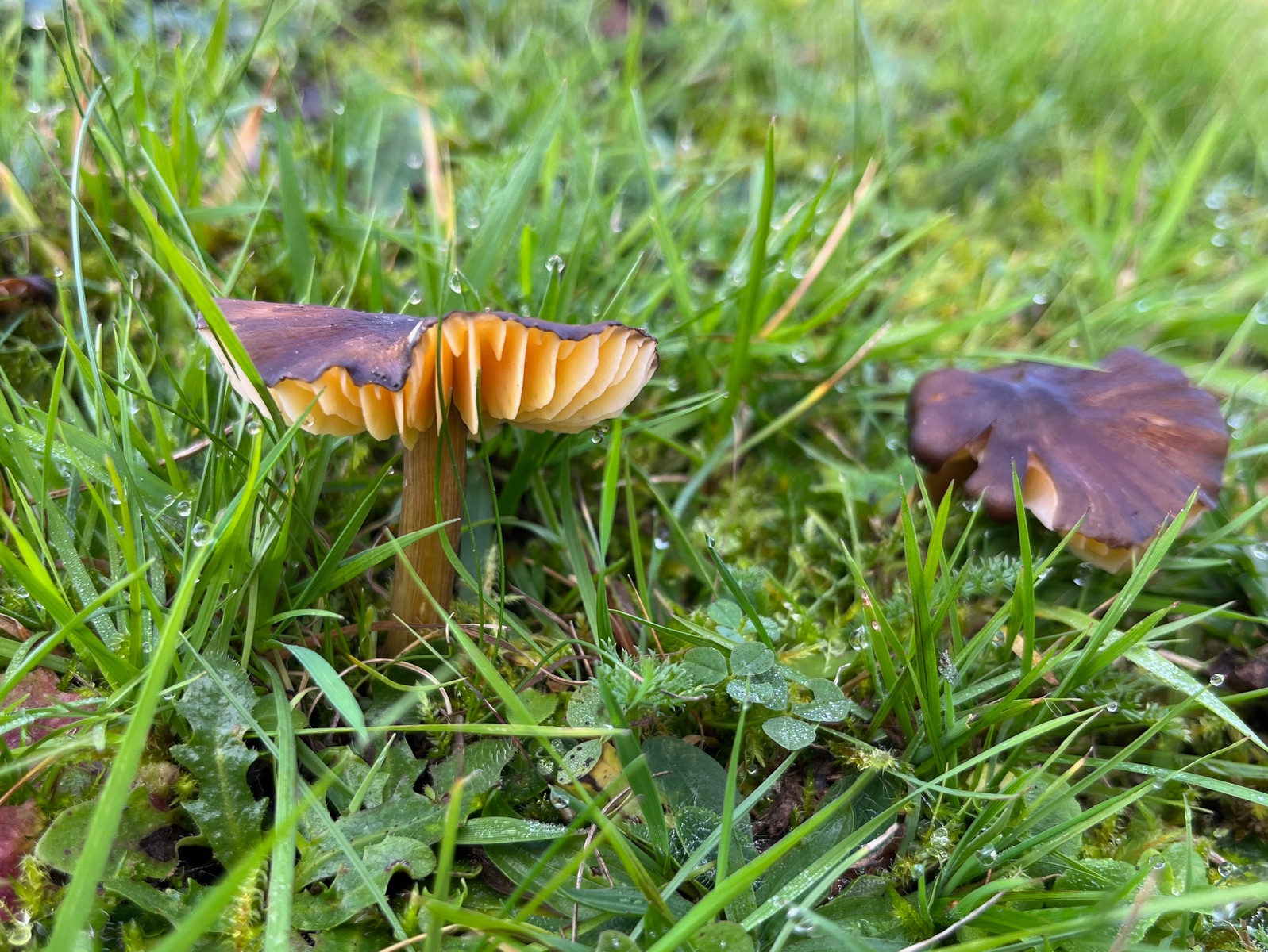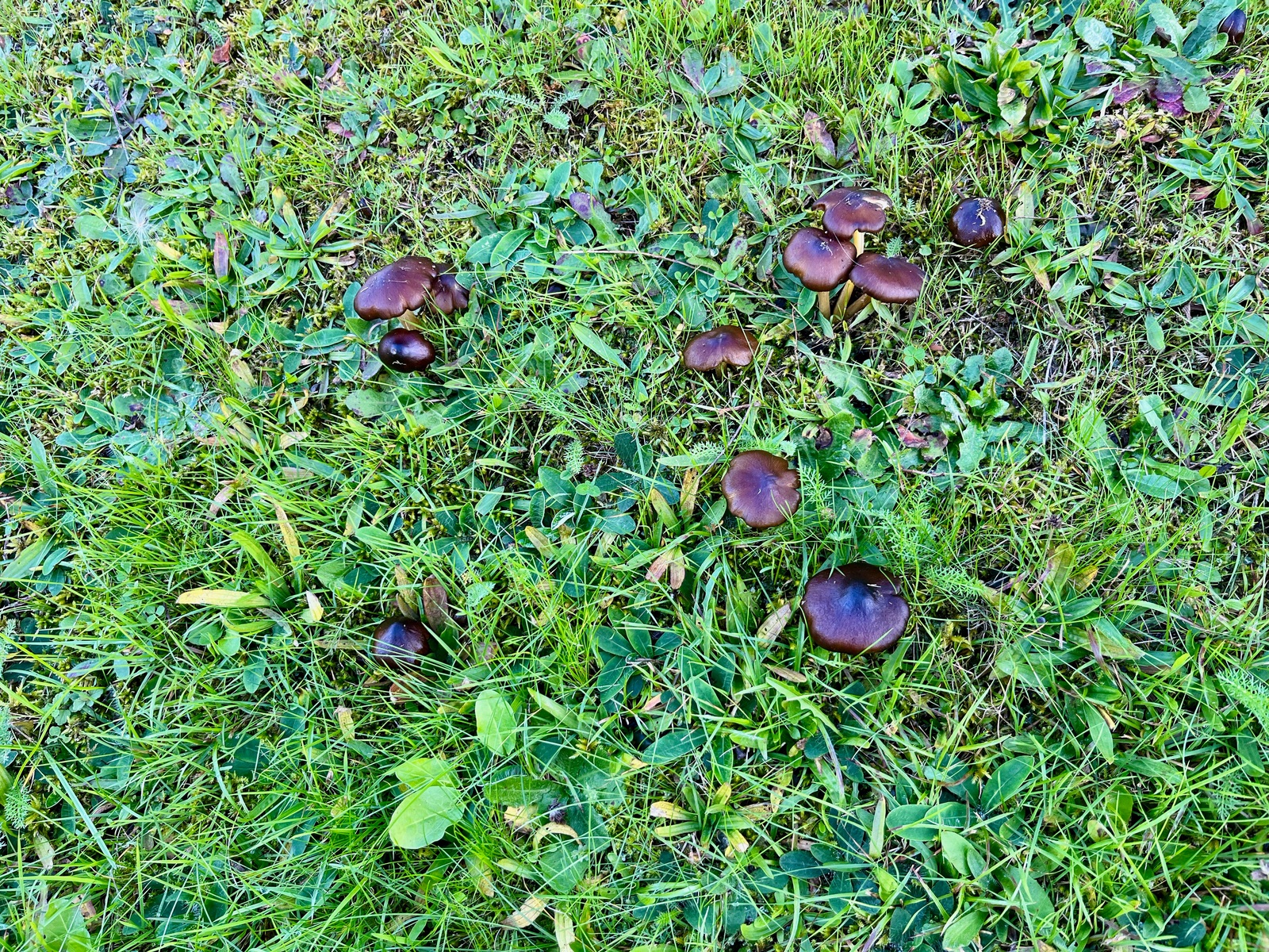 Ich fange mal mit meinen Highlights an. Drei persönliche Saftlings-Erstfunde konnte ich in meiner Umgebung entdecken, darunter Hygrocybe spadicea. Die Art war bis dato erst einmal in Thüringen kartiert. Ich fand sie hier auf mehreren Wiesen, auch direkt vor einem Wohnhaus innerhalb der Ortschaft. Aus meiner Sicht ist der Schwarzbräunliche Saftling eine besonders schöne Art. Offenbar lässt er sich durch Dürresommer nicht davon abhalten, im Herbst zu fruktifizieren. Eher das Gegenteil scheint der Fall zu sein.