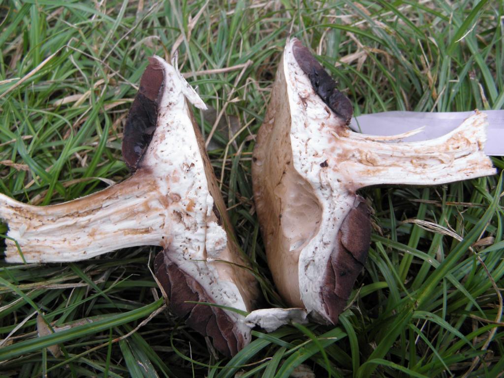 Nummer 2 Sieht mir nach einem Champignon aus, wuchs in einer kleinen Gruppe im selben Busch. Leider alle schon sehr alt und madig.