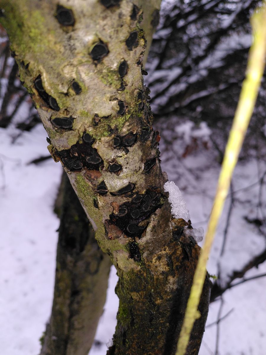 Gepunktete schwarze Tellerchen an Baum sp. > Biscogniauxia marginata