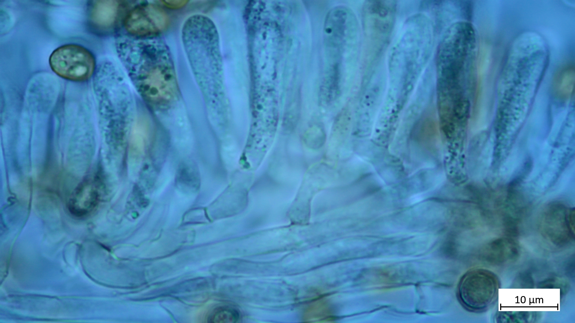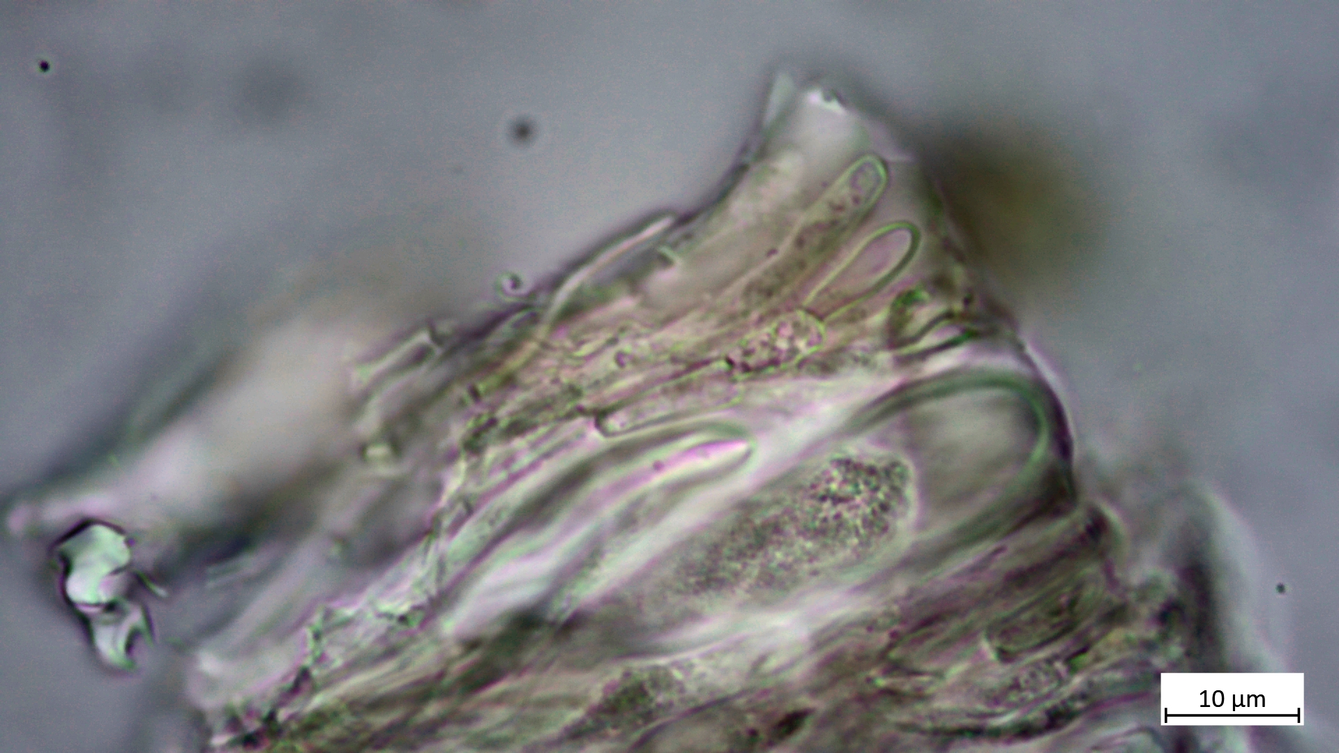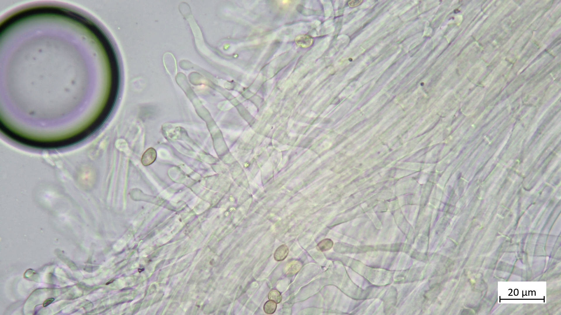 zur Galerina: auf dem 2. Bild der Basidien zeigst Du in der Mitte eine m.E. eindeutige Schnalle, wo die Zelle aufrecht aus der Trama herauswächst.