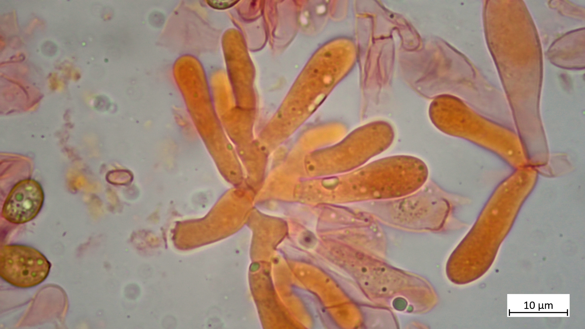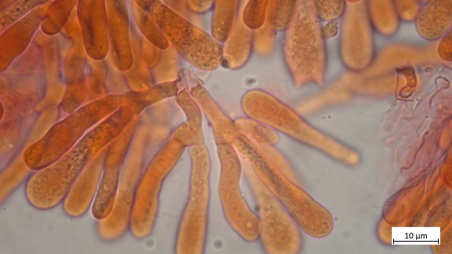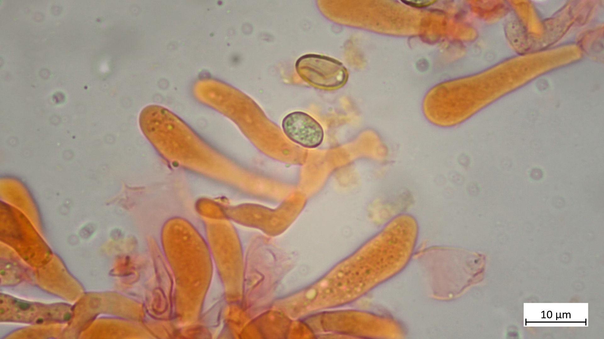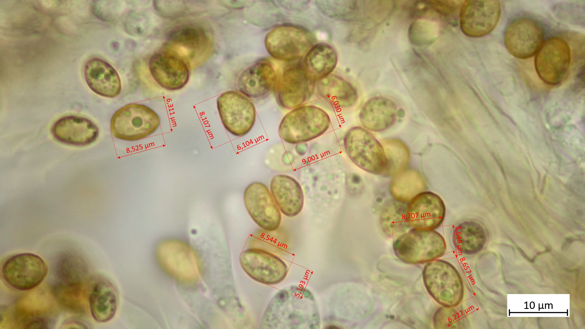 So nun, Makroskopie in Zusammenschau mit den Sporen und den fehlenden Schnallen lässt nicht viele Möglichkeiten. In FN lande ich bei G.graminea und G.similis. Das allermeiste passt sehr gut zu similis, außer das die Sporen als perfekt ellipsoid/ovoid beschrieben werden (nach Kühner, FN und auch Ludwig). Allerdings passen die Sporenmaße (insbesondere Breite, dass nicht vorhandene Ornament und alle anderen Mikromerkmale sowie der Standort (in Moos auf Stein) viel besser zu similis. Nun ja, vielleicht könnt ihr noch etwas beitragen?