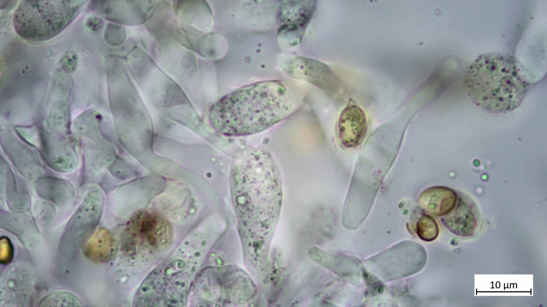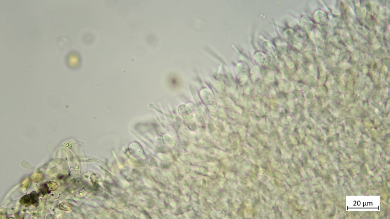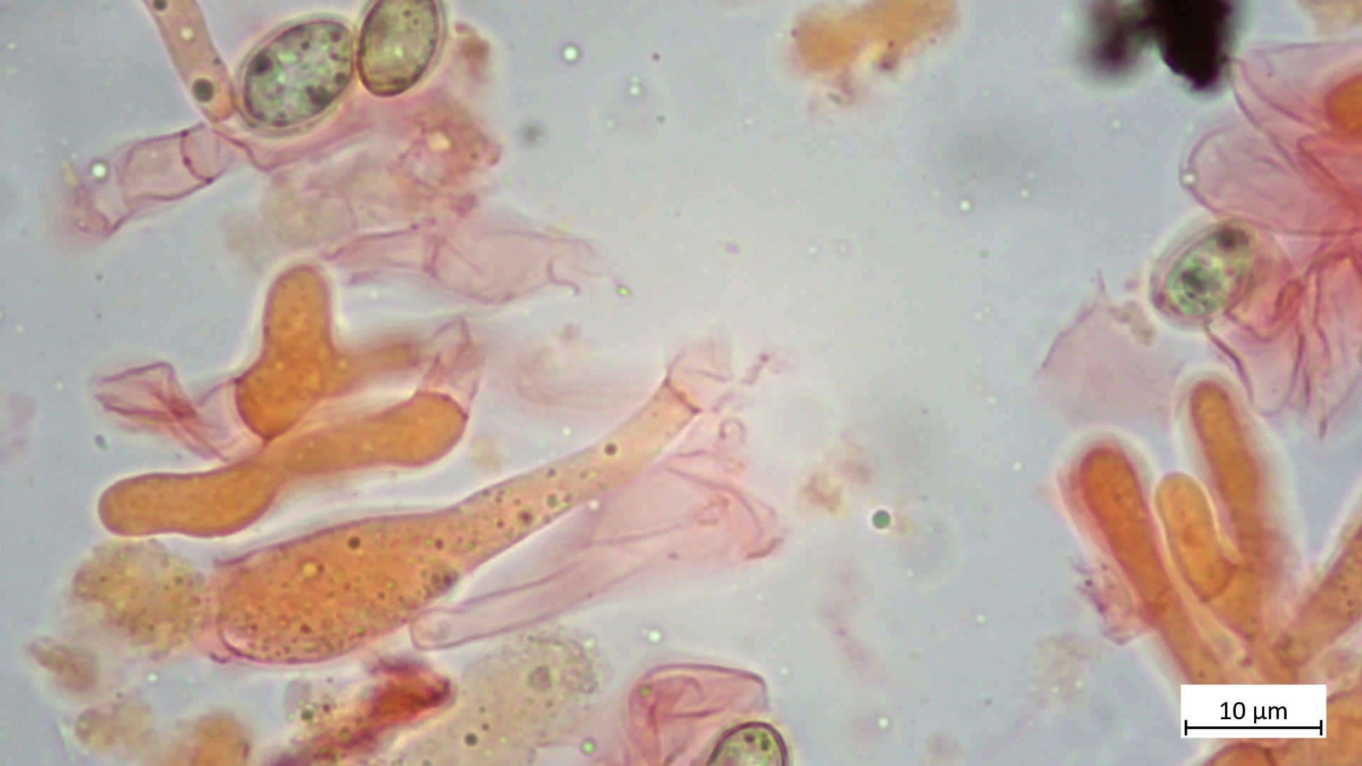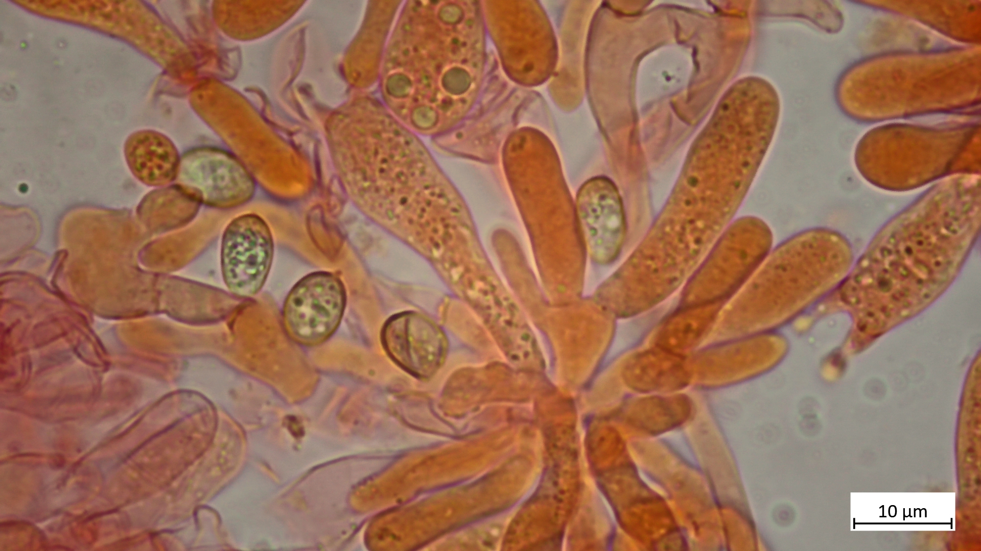 So nun, Makroskopie in Zusammenschau mit den Sporen und den fehlenden Schnallen lässt nicht viele Möglichkeiten. In FN lande ich bei G.graminea und G.similis. Das allermeiste passt sehr gut zu similis, außer das die Sporen als perfekt ellipsoid/ovoid beschrieben werden (nach Kühner, FN und auch Ludwig). Allerdings passen die Sporenmaße (insbesondere Breite, dass nicht vorhandene Ornament und alle anderen Mikromerkmale sowie der Standort (in Moos auf Stein) viel besser zu similis. Nun ja, vielleicht könnt ihr noch etwas beitragen?