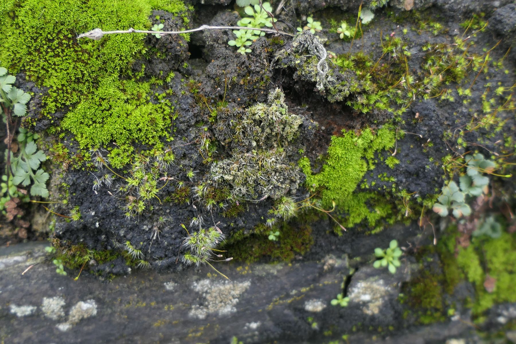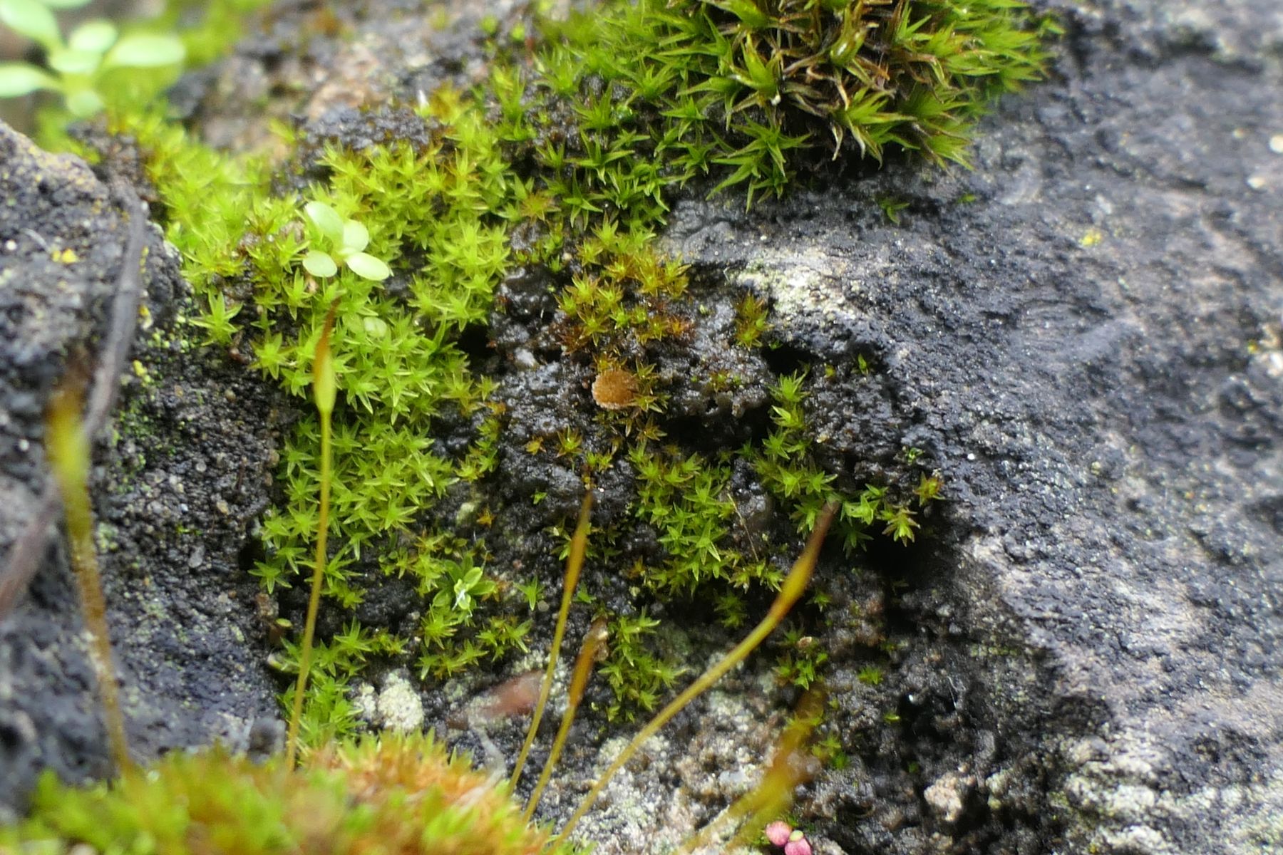 Identifizieren konnte ich etwas unterhalb der Fundstelle Tortula muralis und neben dem Pilz ein ziemlich frisches Moos, welches ich gar nicht eingeordnet bekomme: