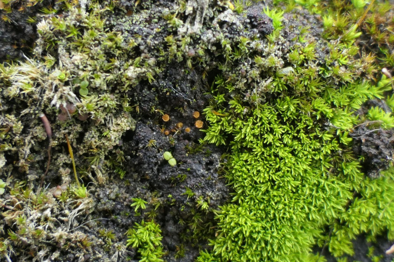 Dann zwei Lamprosporas an zwei unterschiedlichen Stellen, vielleicht aber dennoch diesselbe Art? Etwas schwierig war es diesmal mit der Zuordnung der Moose, da alles durcheinanderwuchs und das betreffende Moos entweder (durch den Parasiten vermutlich) sehr geschwächt, braun-grau-abgestorben daherkam oder aber nur in jungem Stadium anzutreffen war.