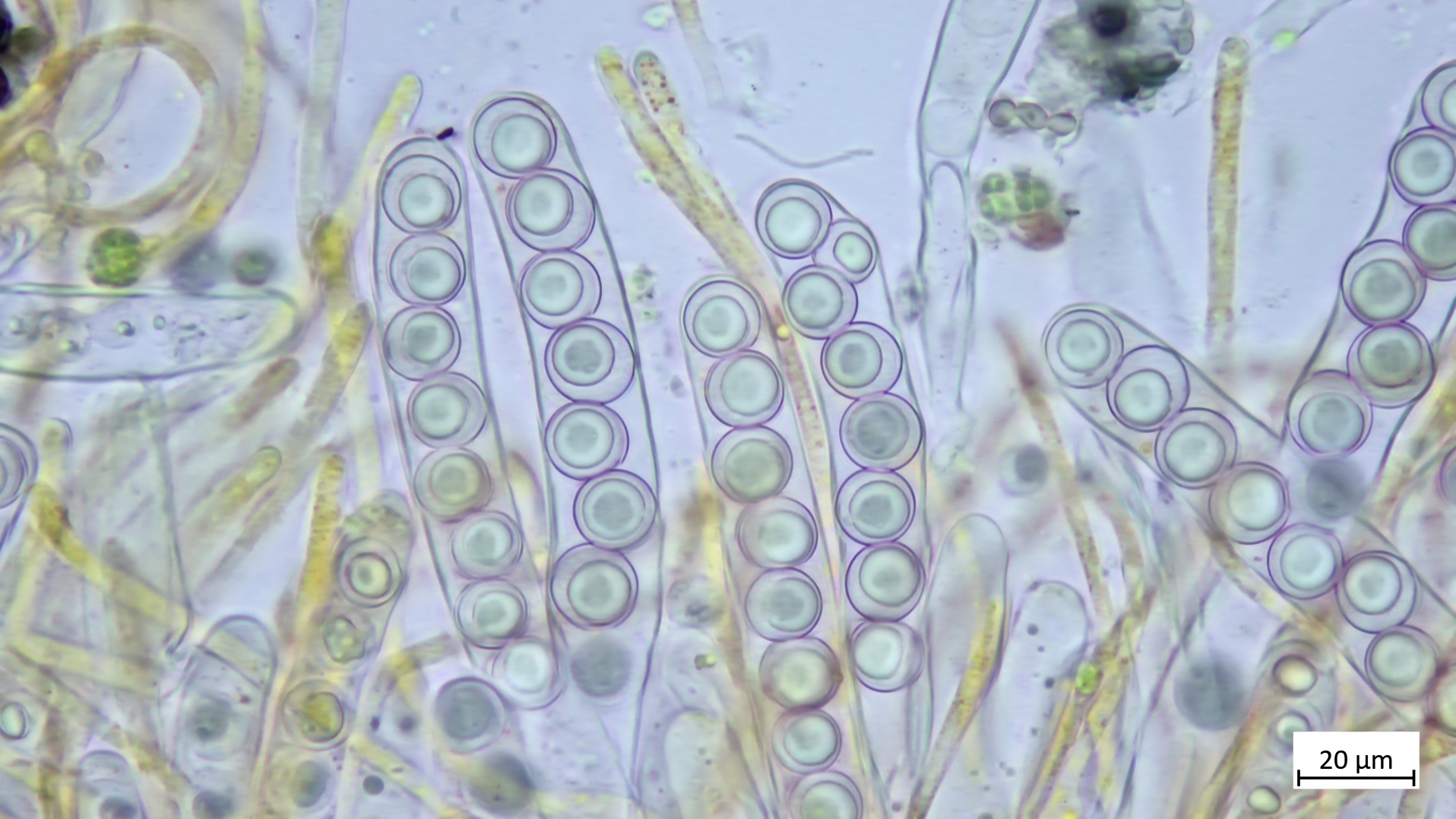 Ascos uniseriat (wie bei erstem Fund auch) und Paraphysen: