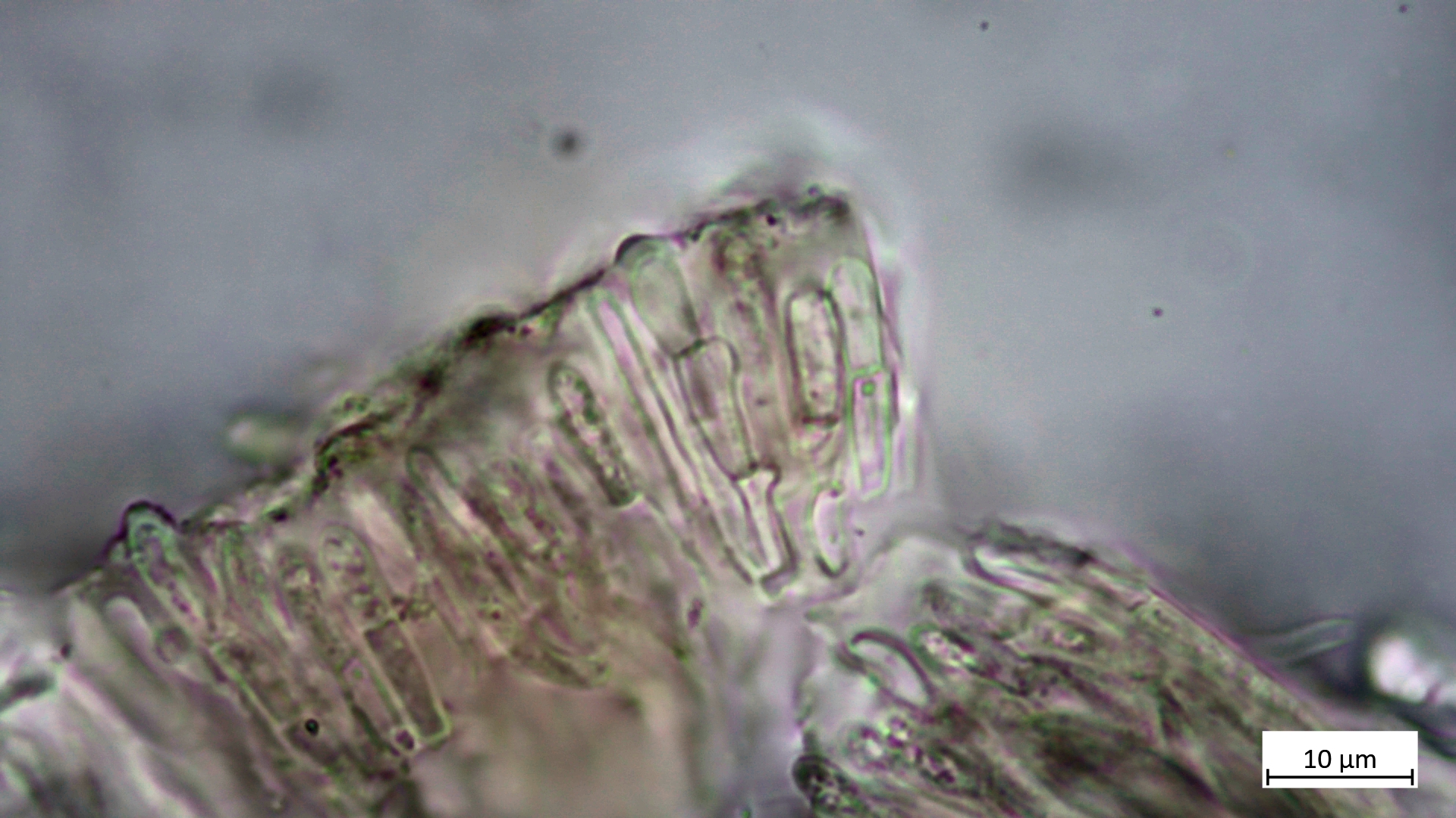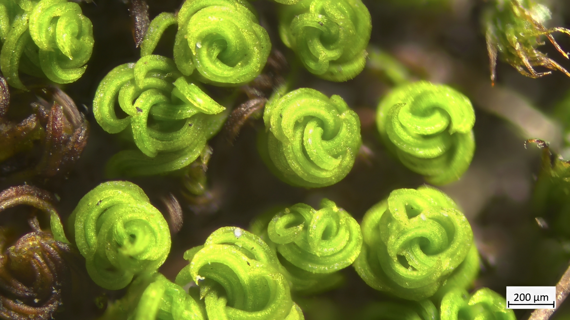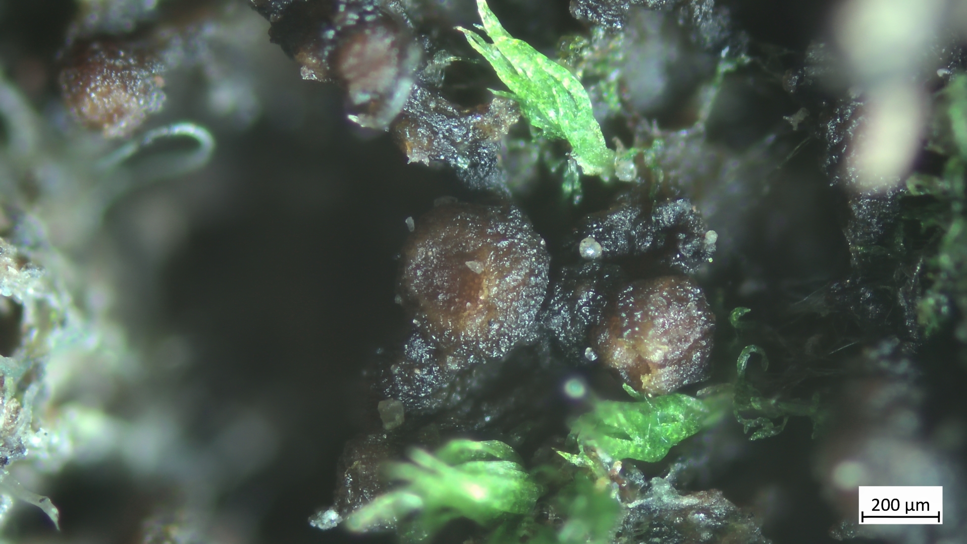 habe unter dem Mikroskop dann noch die Strukturen des jungen Mooses bewundert: