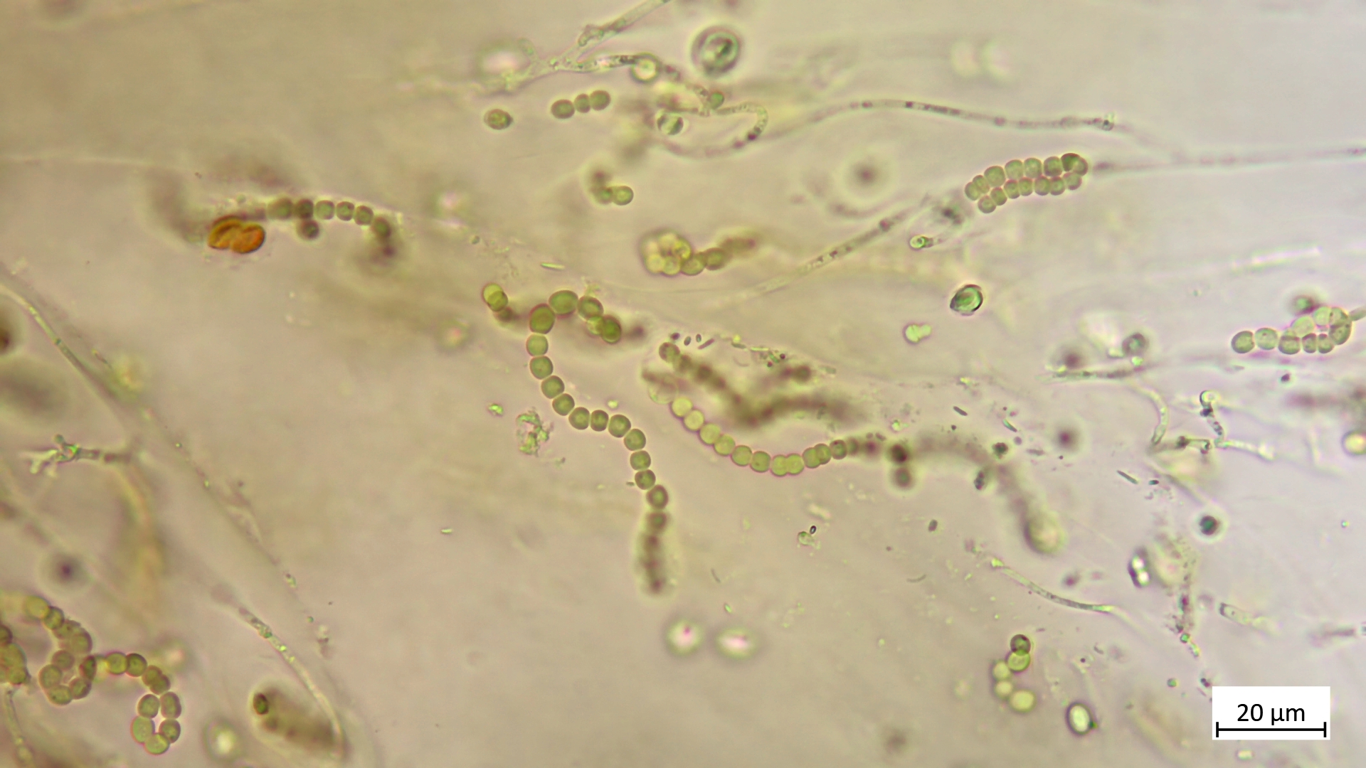 das zweite ist eine Cyanoflechte mit Nostocketten. Hier würde ich mal in Richtung Collema prüfen.