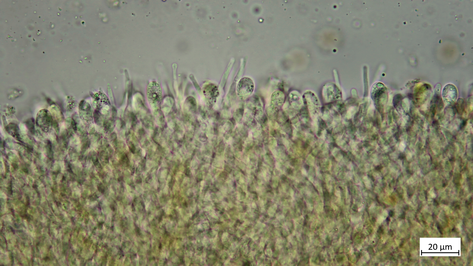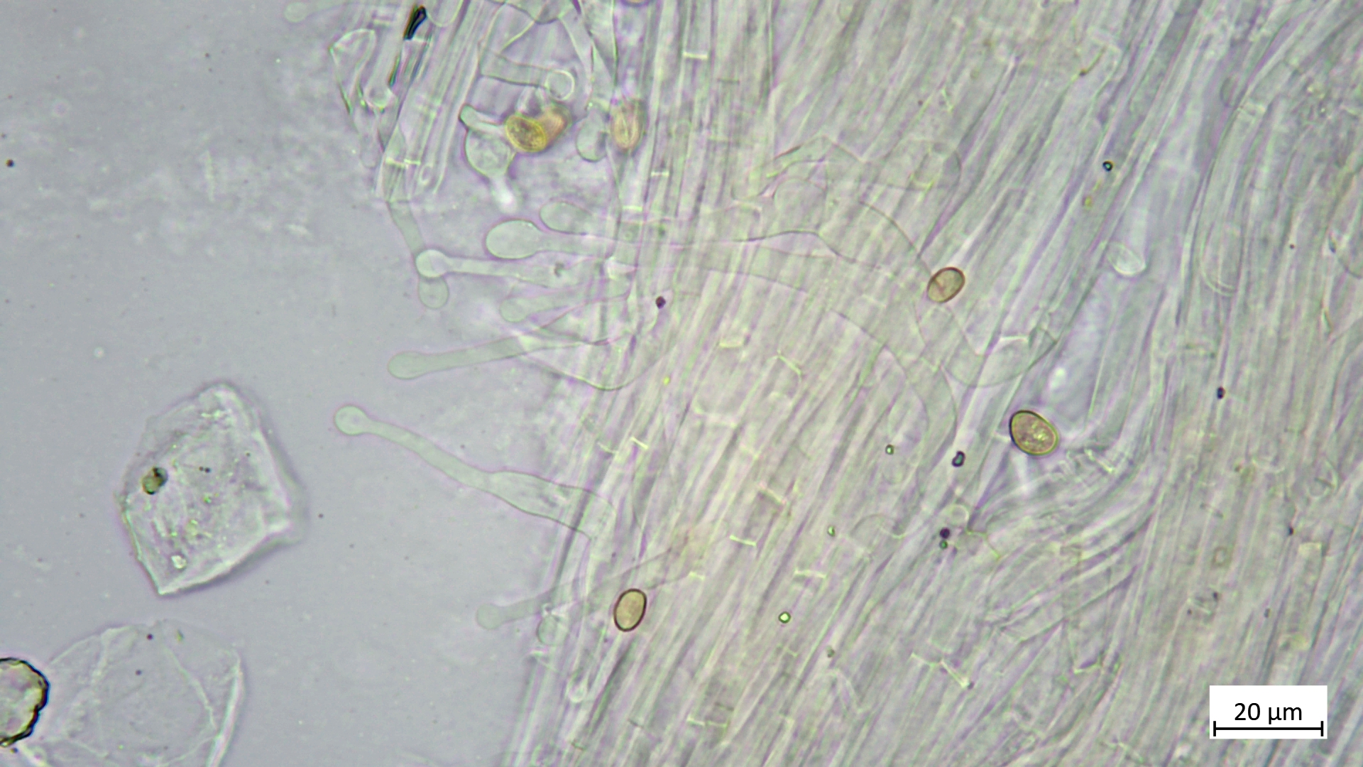 So nun, Makroskopie in Zusammenschau mit den Sporen und den fehlenden Schnallen lässt nicht viele Möglichkeiten. In FN lande ich bei G.graminea und G.similis. Das allermeiste passt sehr gut zu similis, außer das die Sporen als perfekt ellipsoid/ovoid beschrieben werden (nach Kühner, FN und auch Ludwig). Allerdings passen die Sporenmaße (insbesondere Breite, dass nicht vorhandene Ornament und alle anderen Mikromerkmale sowie der Standort (in Moos auf Stein) viel besser zu similis. Nun ja, vielleicht könnt ihr noch etwas beitragen?