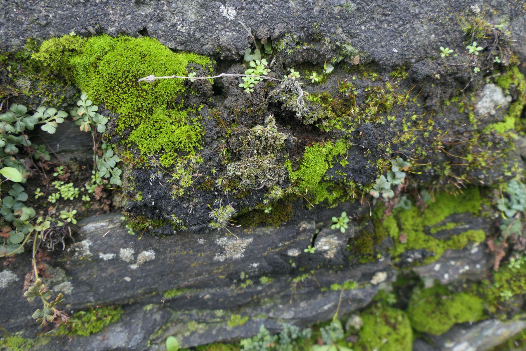Identifizieren konnte ich etwas unterhalb der Fundstelle Tortula muralis und neben dem Pilz ein ziemlich frisches Moos, welches ich gar nicht eingeordnet bekomme: