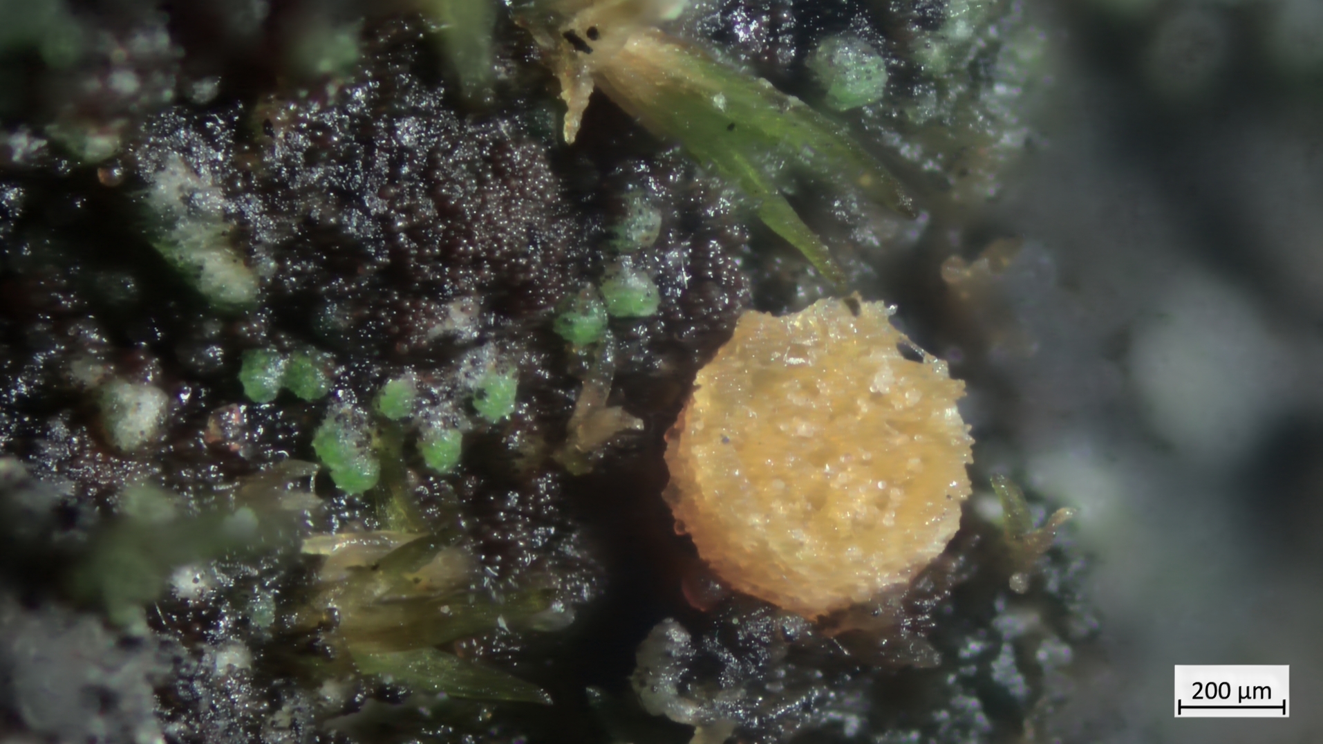 02 Lamprospora tortula ruralis cf., wenn ich es richtig deute auf Drehzahnmoos und dann auch mit entsprechenden Sporen (scheint sich bei uns wohl zu fühlen, kenne ich schon aus dem eigenen Garten)