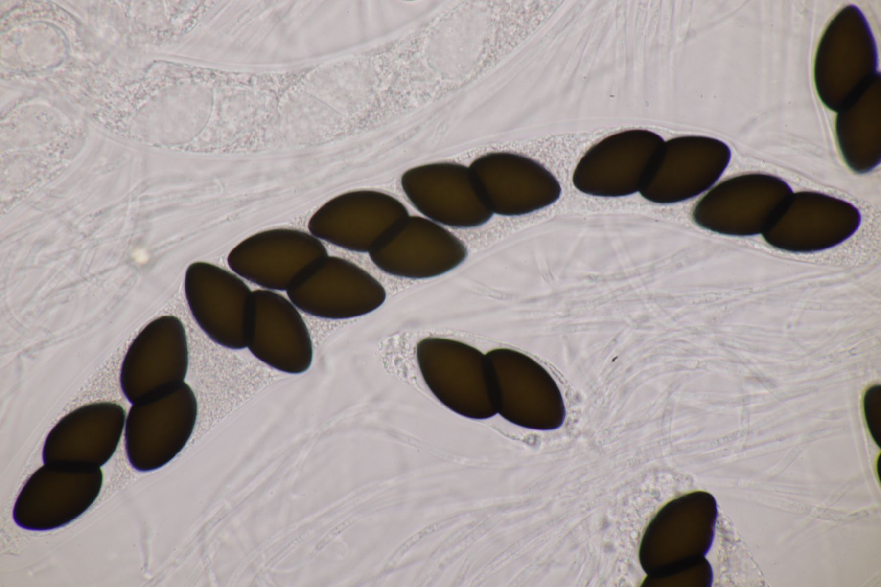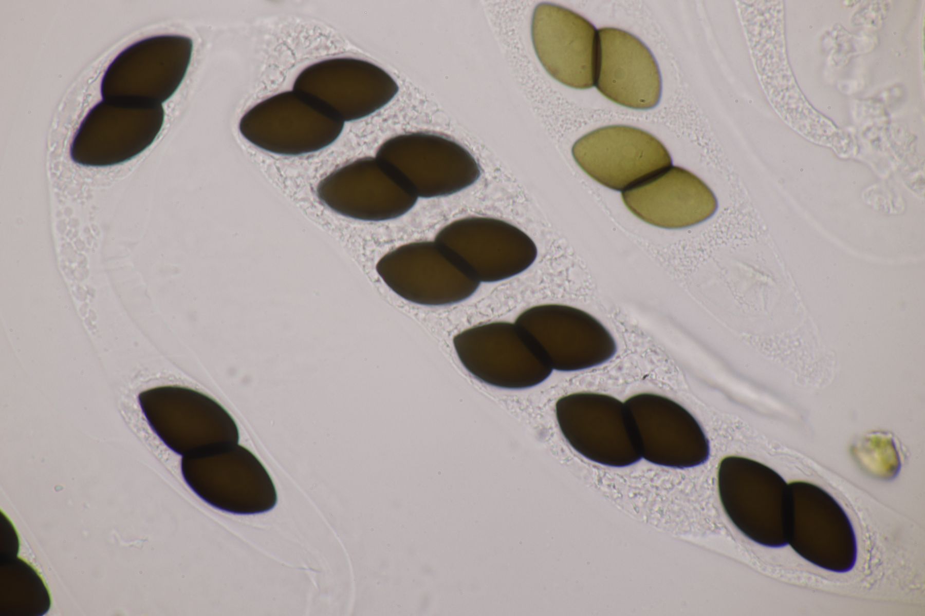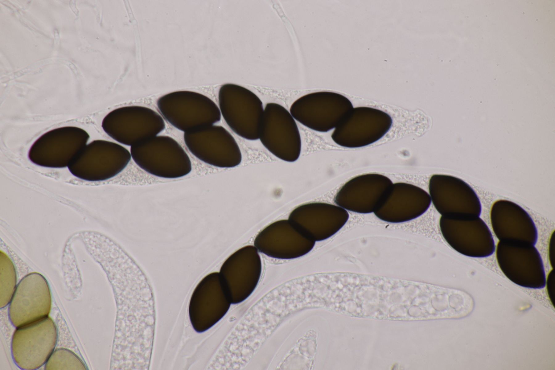 2. Coniochaeta vagans mit Sporen von 13-14.5 µm x 10-11 µm