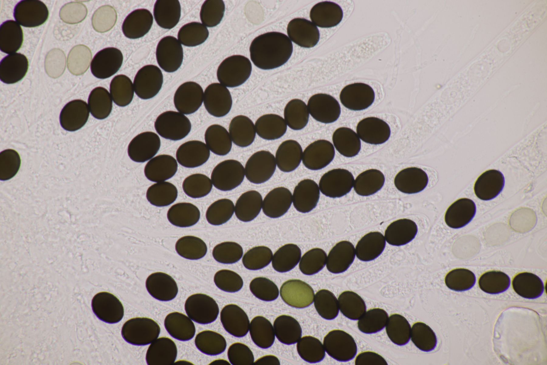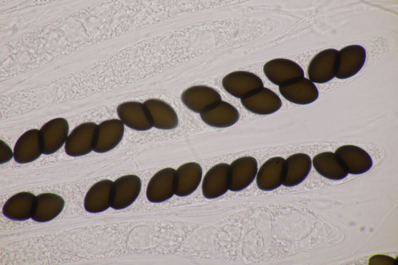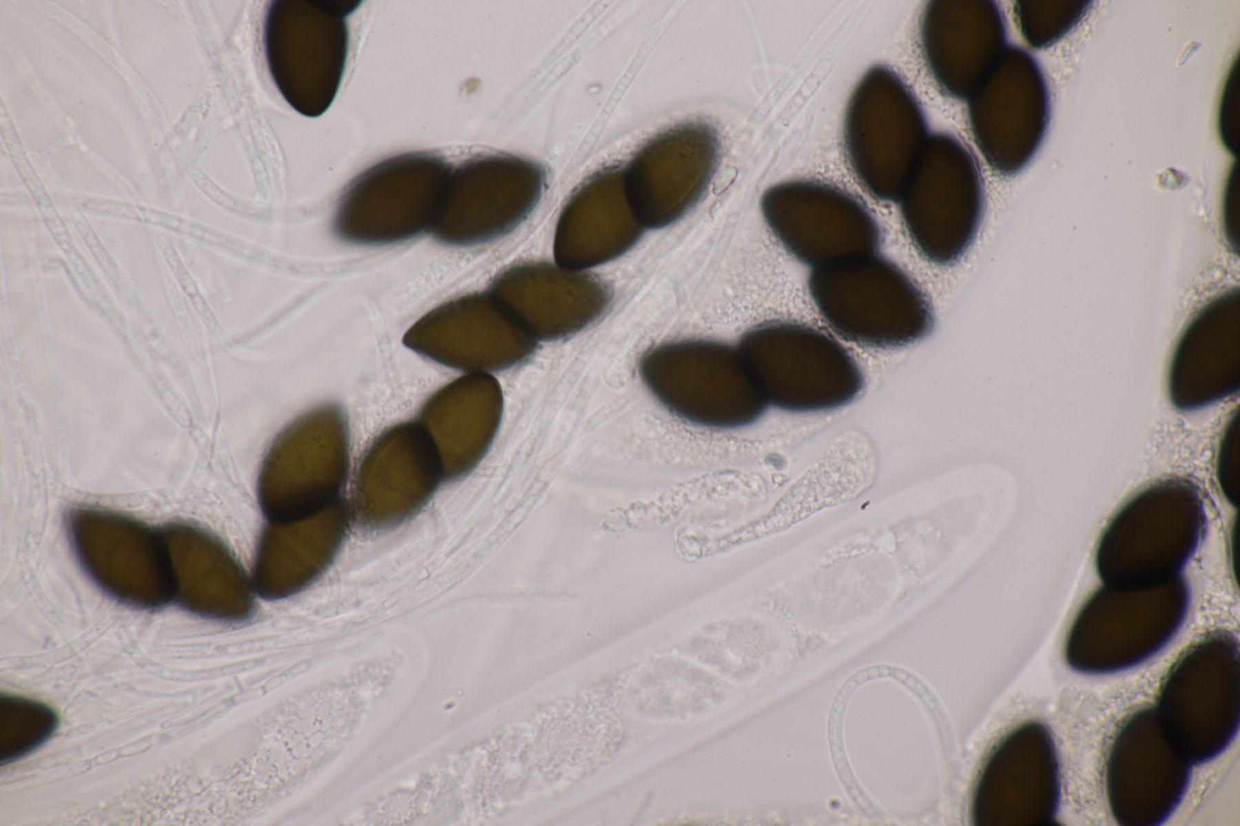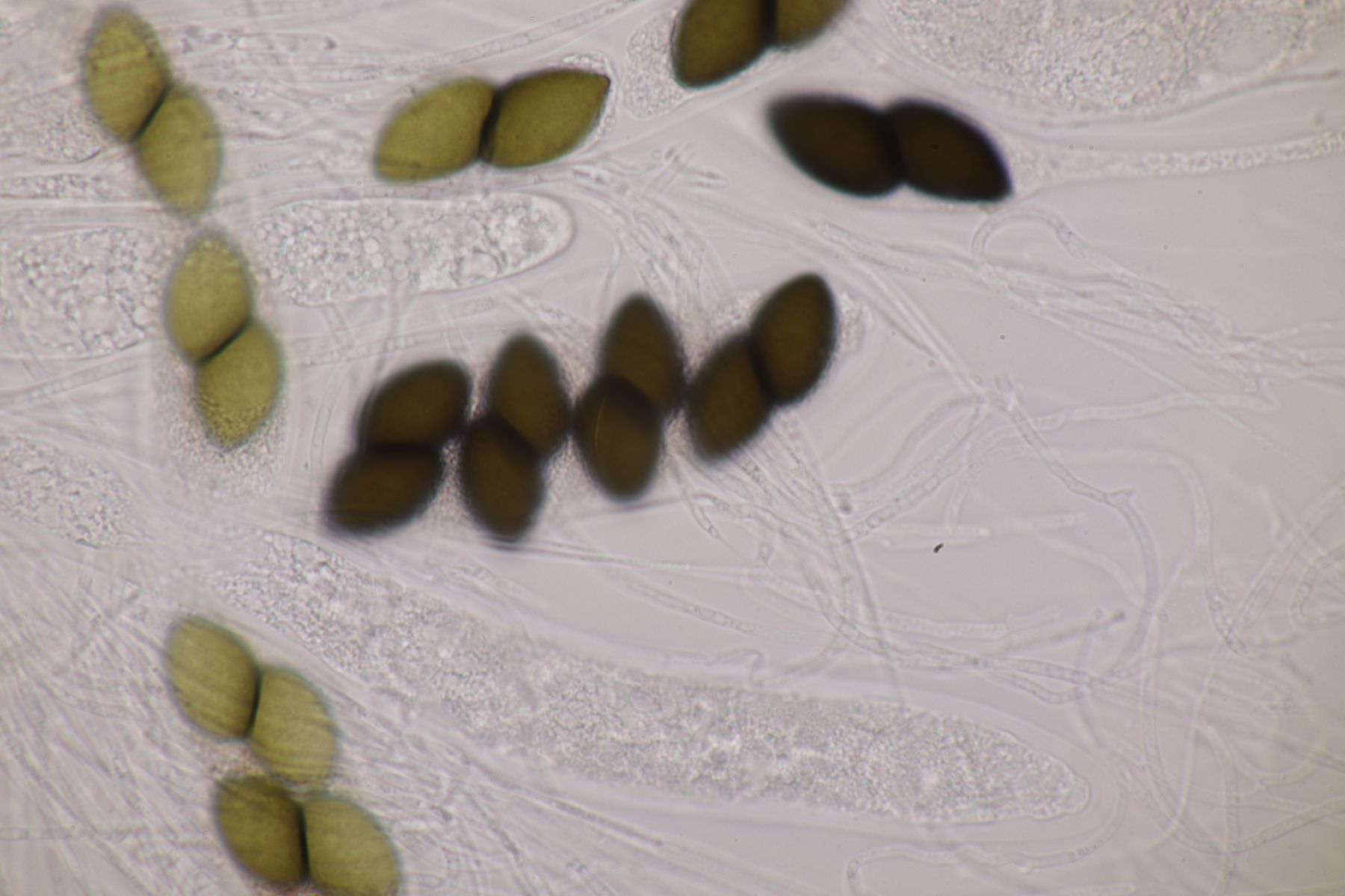 2. Coniochaeta vagans mit Sporen von 13-14.5 µm x 10-11 µm