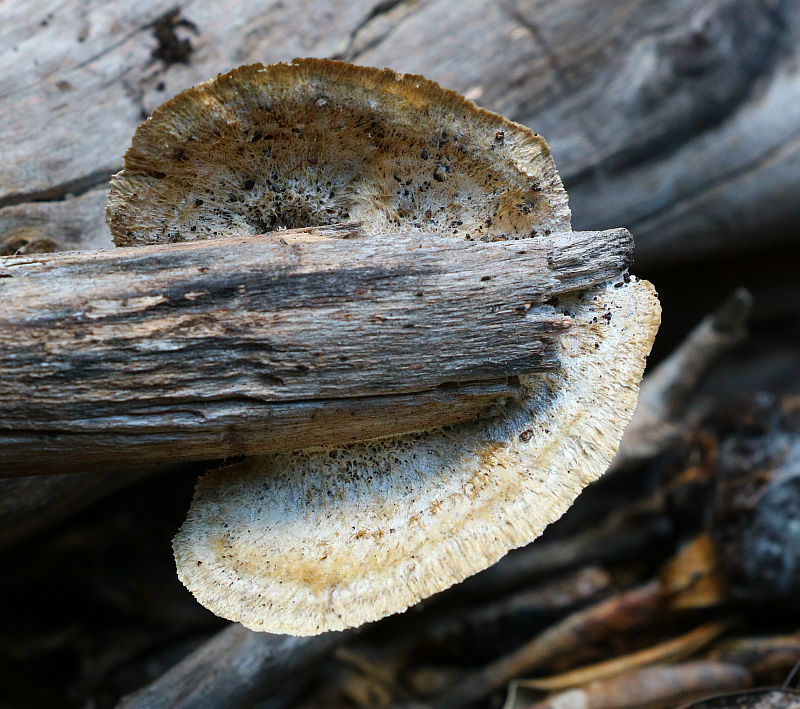 um die beiden Borstentrameten auseinanderzuhalten musst Du die Tramafarbe beurteilen. Bei C. gallica braun, bei C. trogii weißlichcreme. Äußerlich ist zwar C. gallica in allen Teilen grundsätzlich dunkler als C. trogii. Da kann man sich aber schnell vertun. An Esche ist es fast immer C. gallica, an Weide und Pappel meist C. trogii.