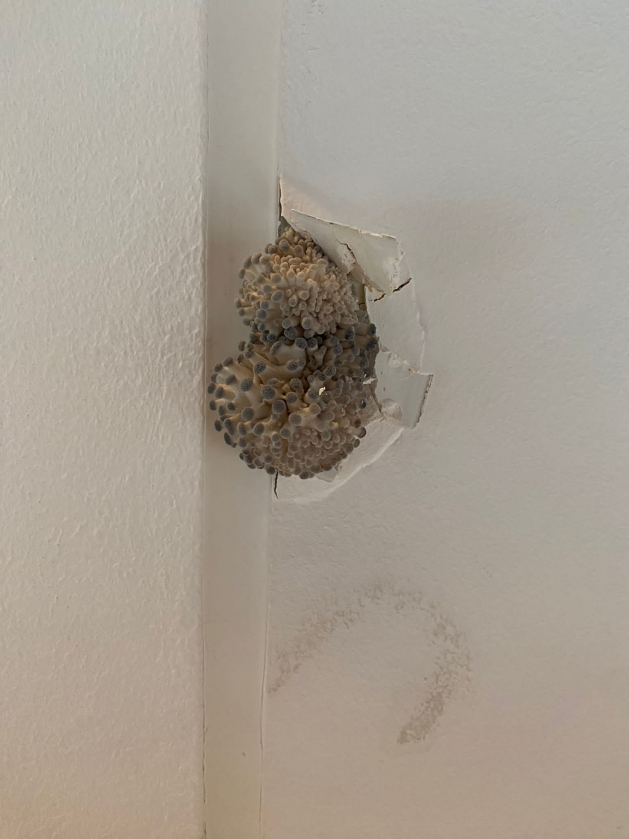 Du hast den Finger in der Wunde. Die Feuchtigkeitszufuhr für die Pilzbrut kommt über die dortige Bauteil-Trennung bzw. durch die erkennbaren Fugenabrisse.