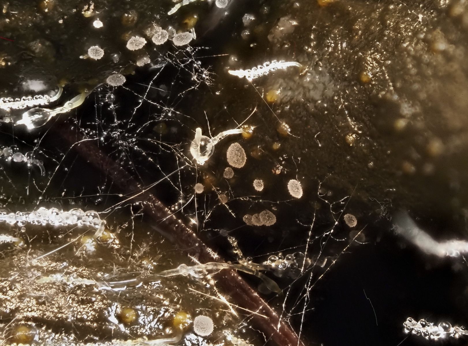 Neben dem Pilobolus hat sich auch noch ein kleines Becherchen eingenistet.