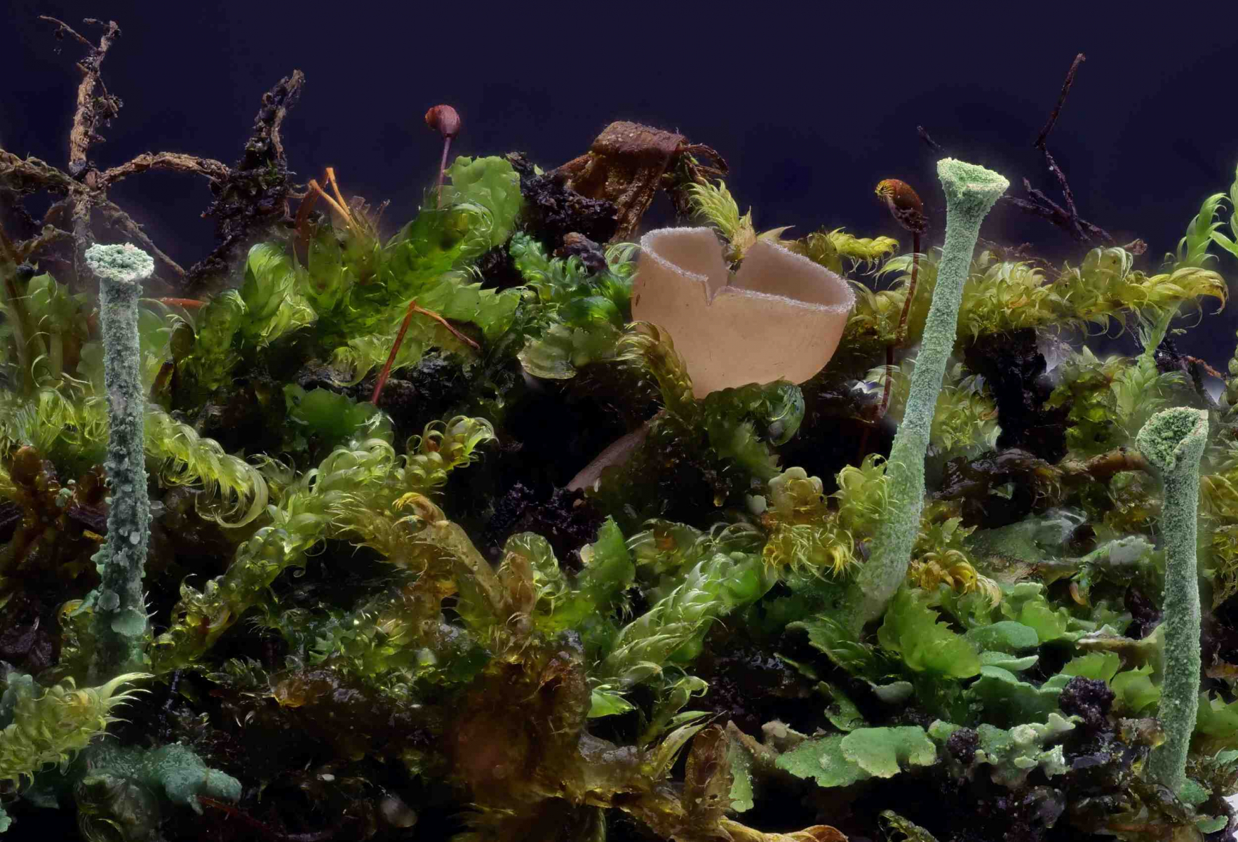 Ich habe im Tal mal wieder Mengen an Moosen abgesucht, so etwas Oranges fällt auf – Nichts.