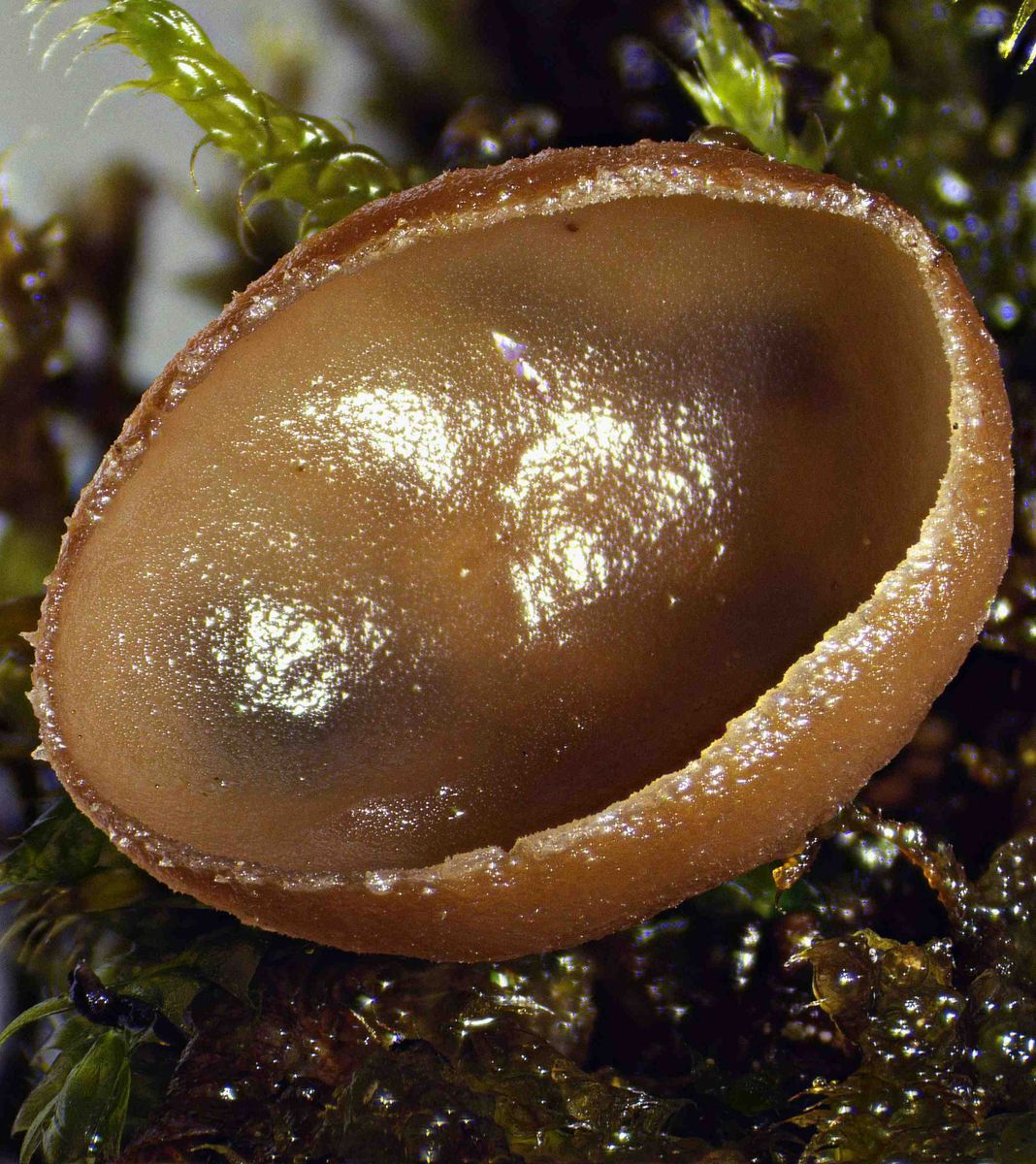 An zuvor gefundener Stelle im Moos fand ich dann die beigefarbenen Becherlinge, mit bis zu 5 mm Durchmesser. Die Plastikdosen wurden gefüllt.