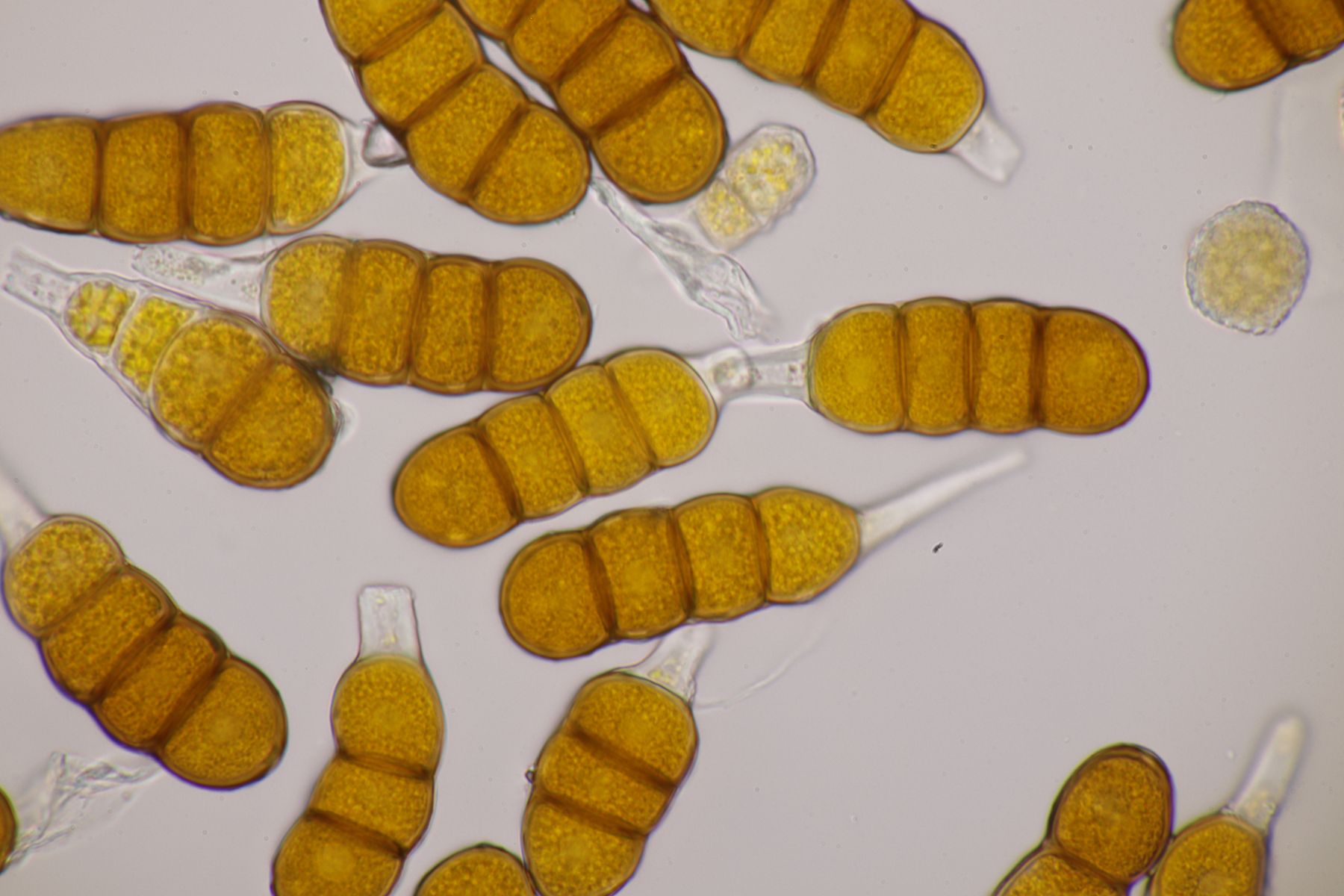9. Auf einem Polytrichum-Blättchen war dann dieser winzige Fruchtkörper zu finden. Mutmaßlich Epibryon interlamellare, aber leider ließ sich das Dingen dann nicht gescheit präparieren und weiter untersuchen.