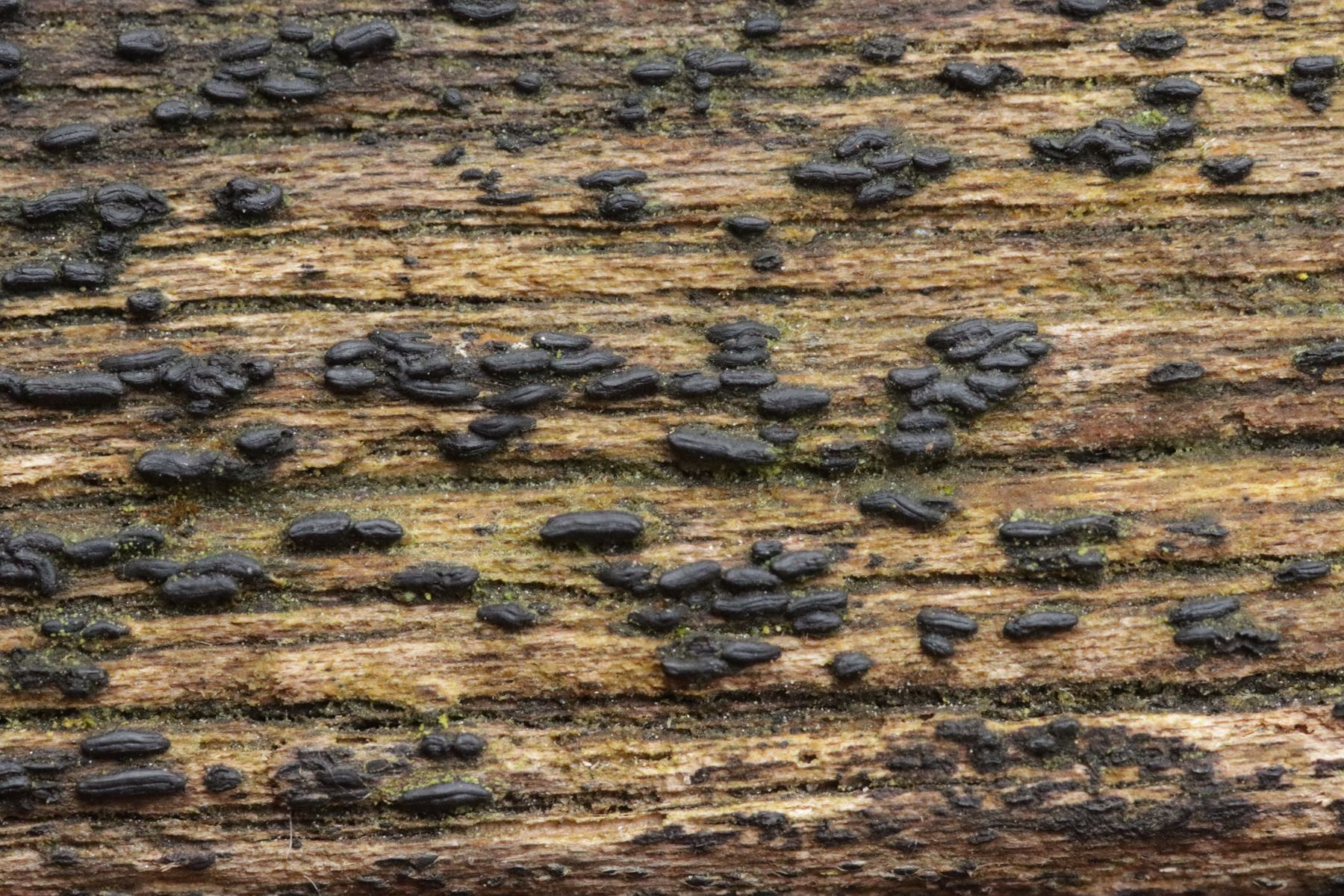 8. Hysterium angustatum auf einer Bank aus Eichenholz