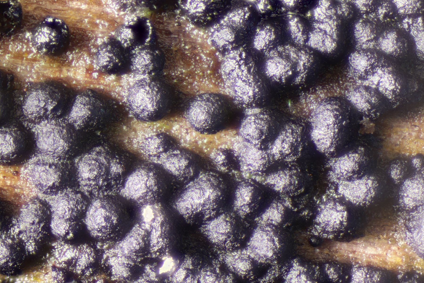 5. Meloderma desmazieri auf Pinus strobus, auch eine wohl oft übersehene Art. Einfach mal am Baum befindliche Nadeln von Pinus strobus nach Spaltlippen absuchen.