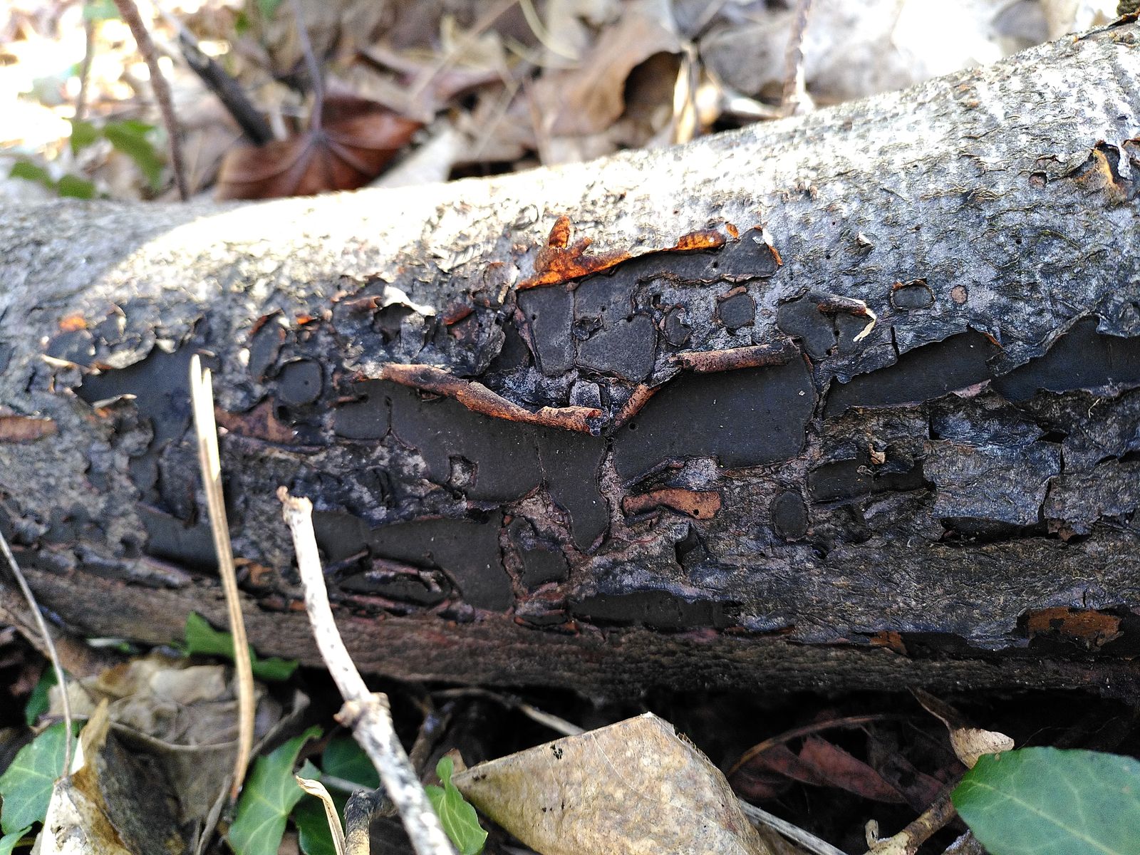 in dem Fall schaun zumindest die kleineren Stromata aber eher nach Biscogniauxia nummularia aus. Auf dem letzten Bild evtl auch eine Mischkollektion aus einer flächigen Diatrype (das große Stroma) und oben links der kleinere dunklere Fleck auch die Biscogniauxia.