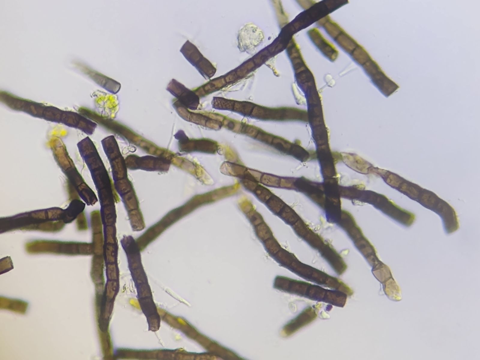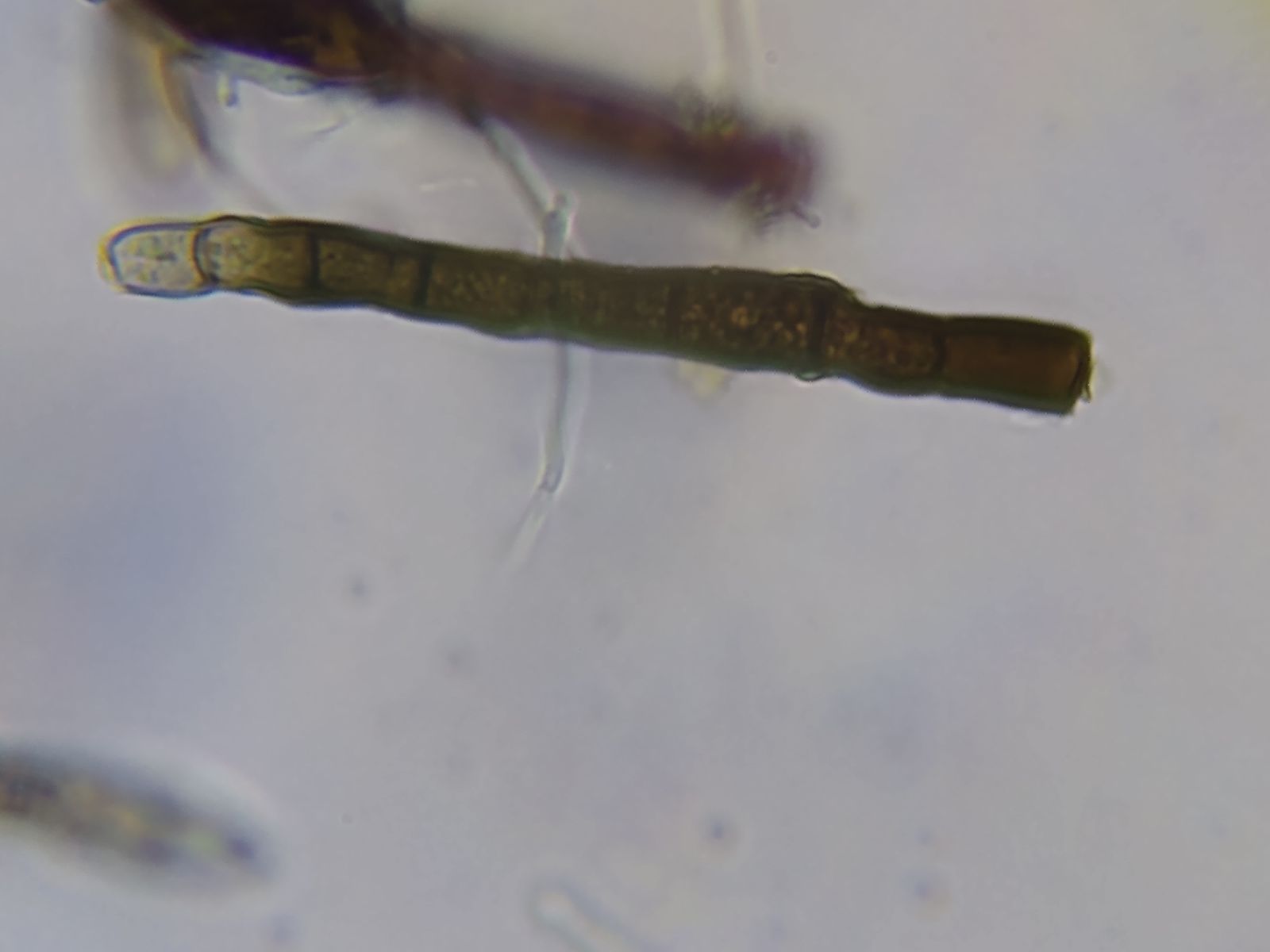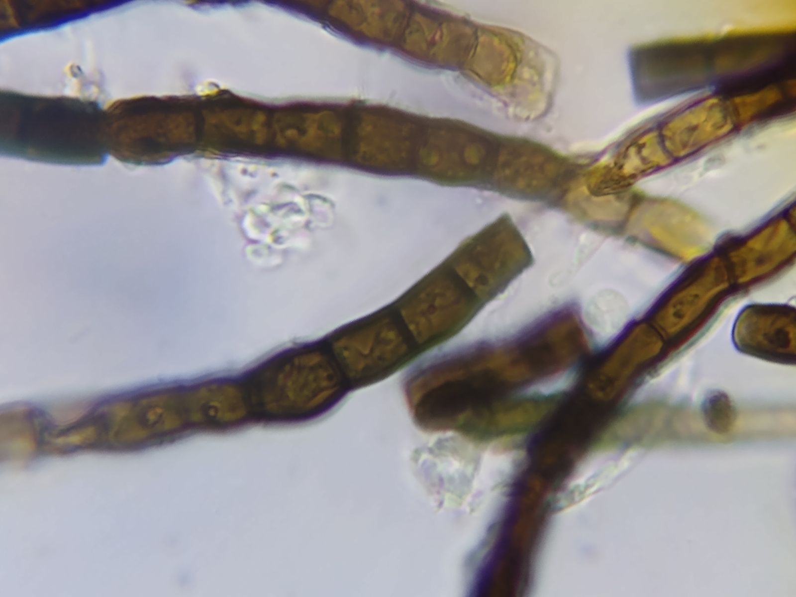 Offenbar die Konidienketten von Teaniolella phaeophysciae, einem lichenicolen Pilz, der auf Phaeophyscia orbicularis und verwanden Flechtenarten und -gattungen vorkommt.