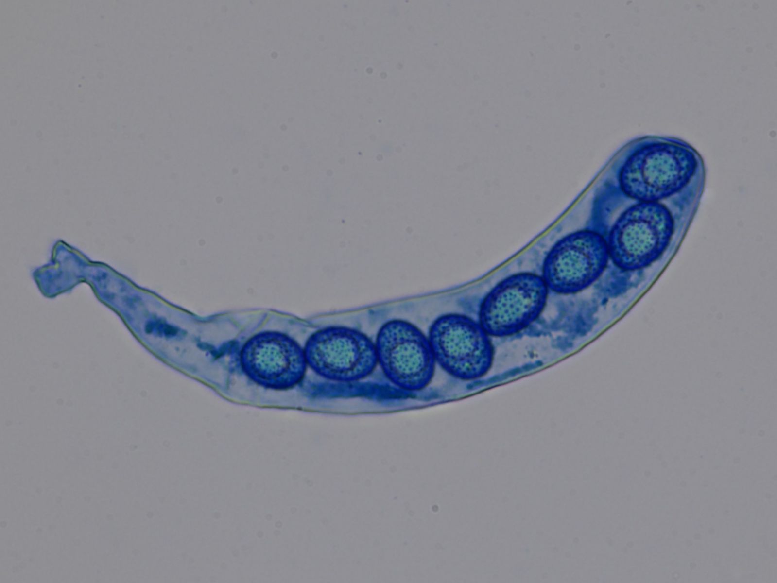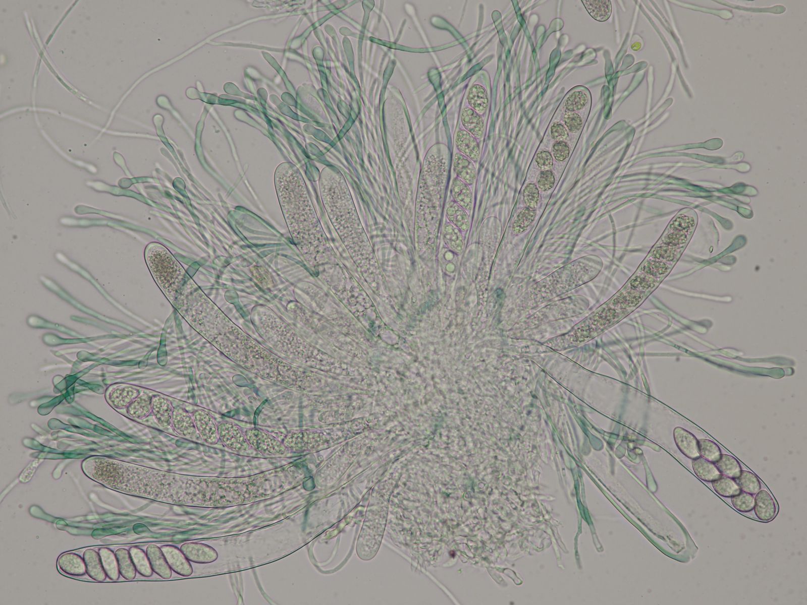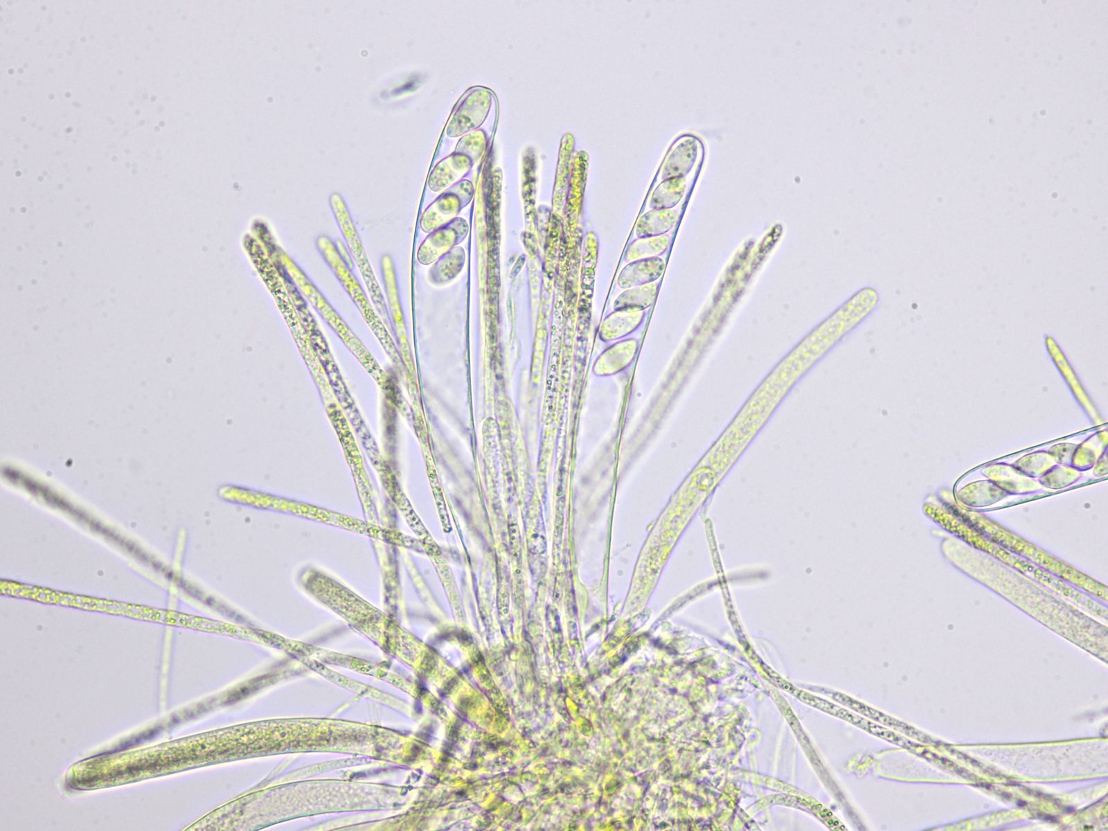 Mikroskopisch unspektakulär, Asci uniserat, Paraphysen ohne sonderlich gefäbte Pigmentgranula oder Vakuolen