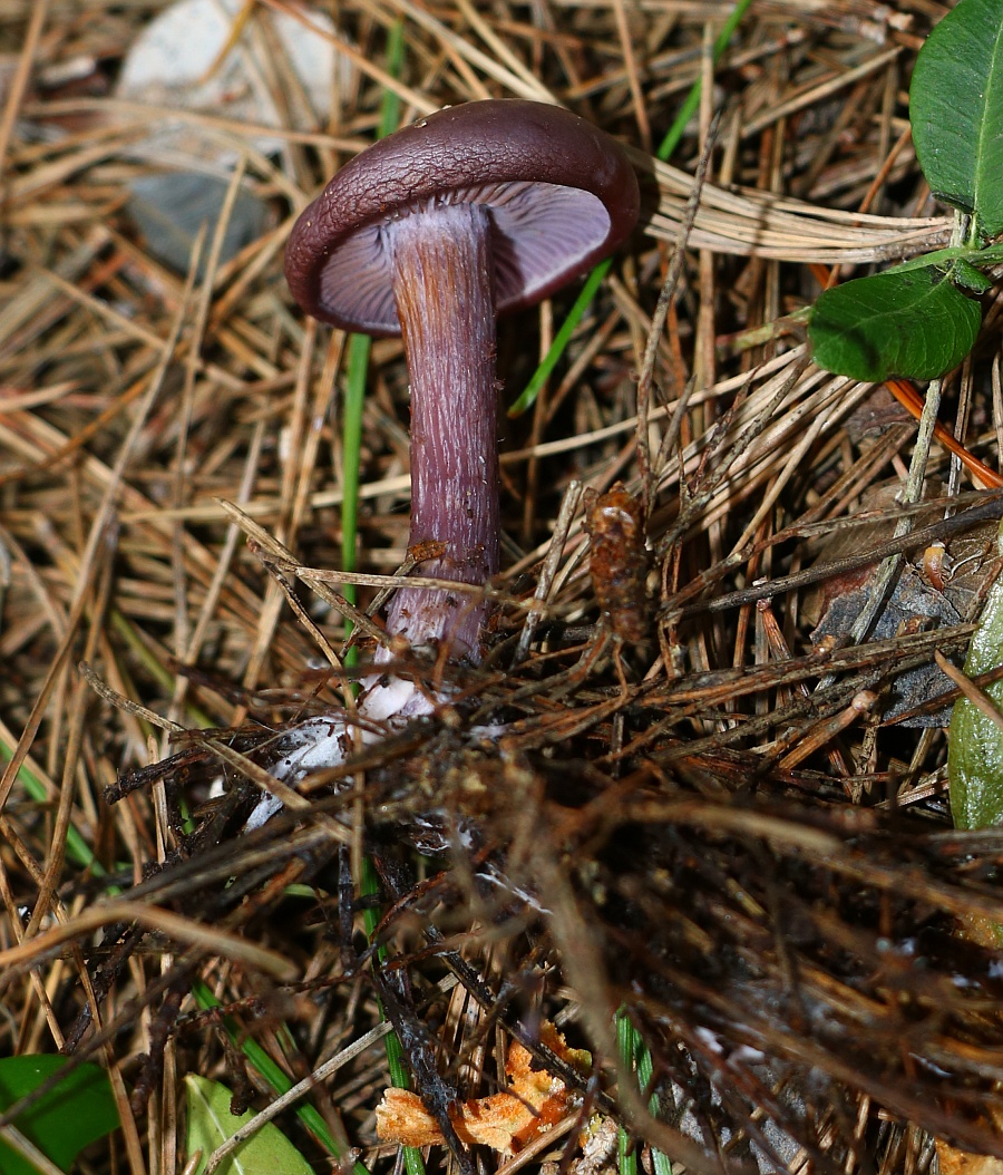 4. There is a gradual change in colour of the pileus and stipe when the fruiting body is ageing, initially (young individuals) are always maroon-violet, rather dull, then gradually become straw to light brown when fully mature/dieing out.