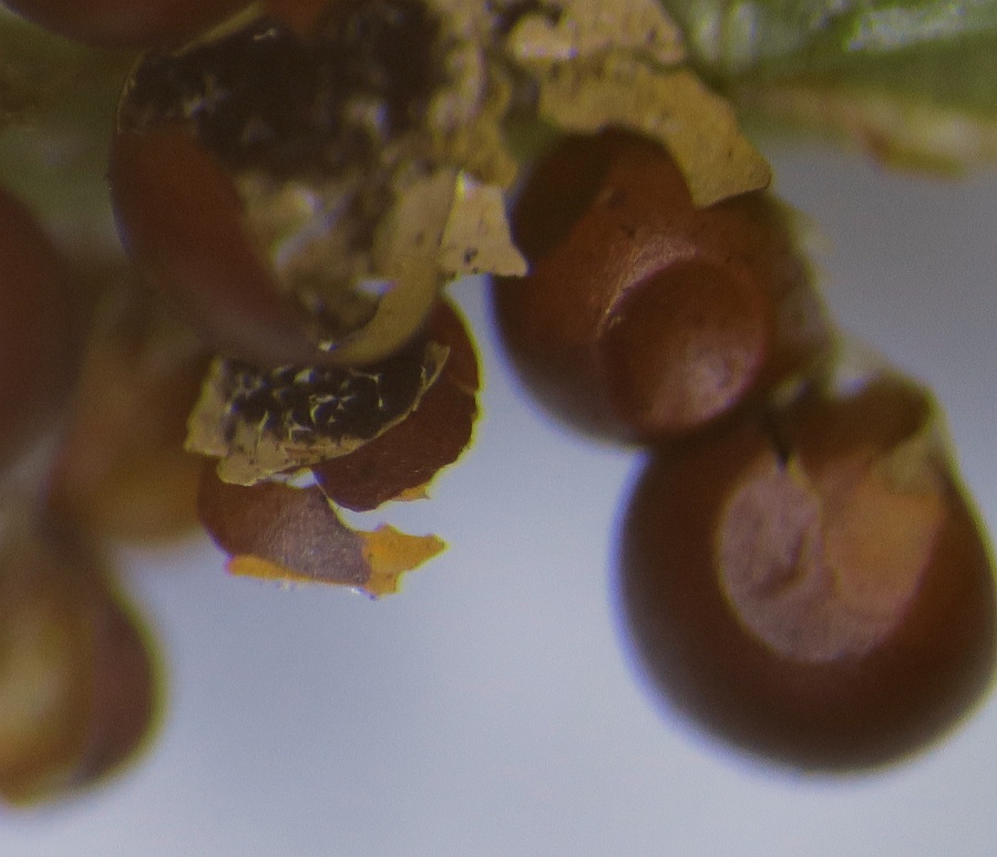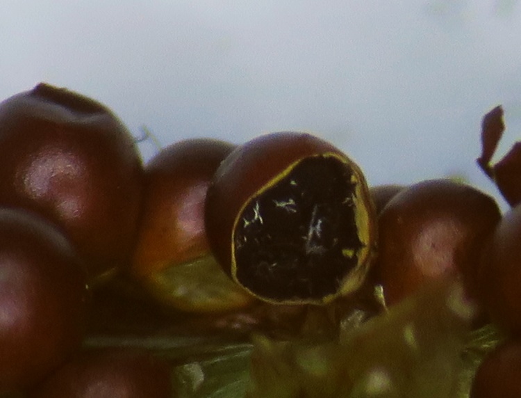 For long I wished to find and collect the beautiful Leoarpus fraglis and finally, I was lucky on the island of Comino. The fruiting bodies are more spherical than the usual pear-shaped bodies but I think it is part of the species variation. Plasmodium yellow, Peridium bronze brown, shiny, inner crust golden yellow, spore mass pitch black.