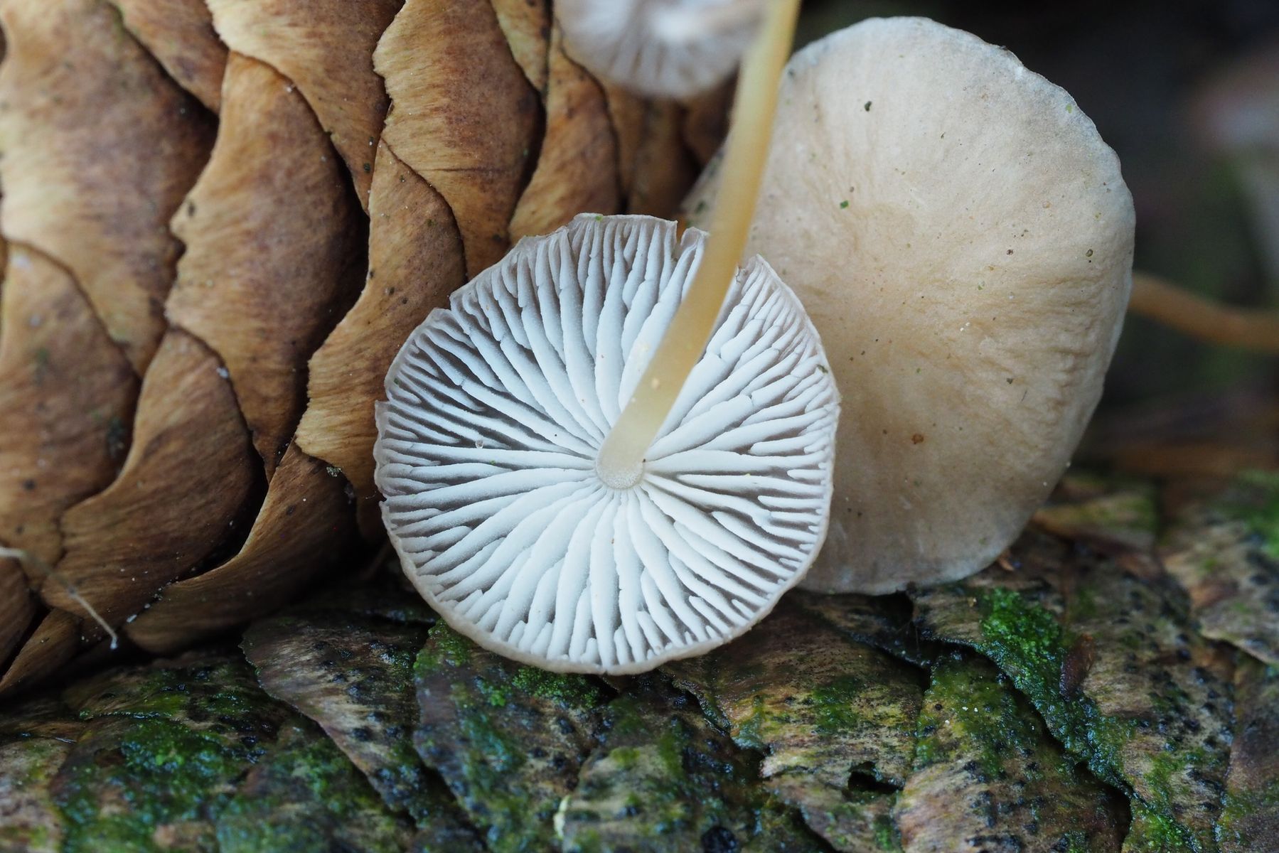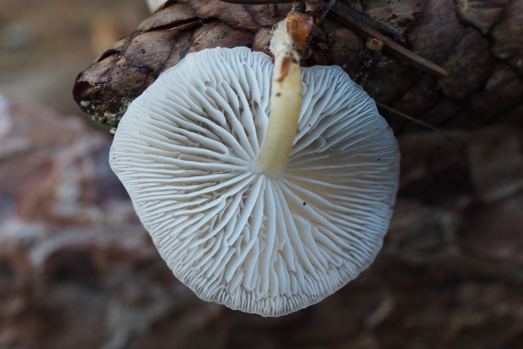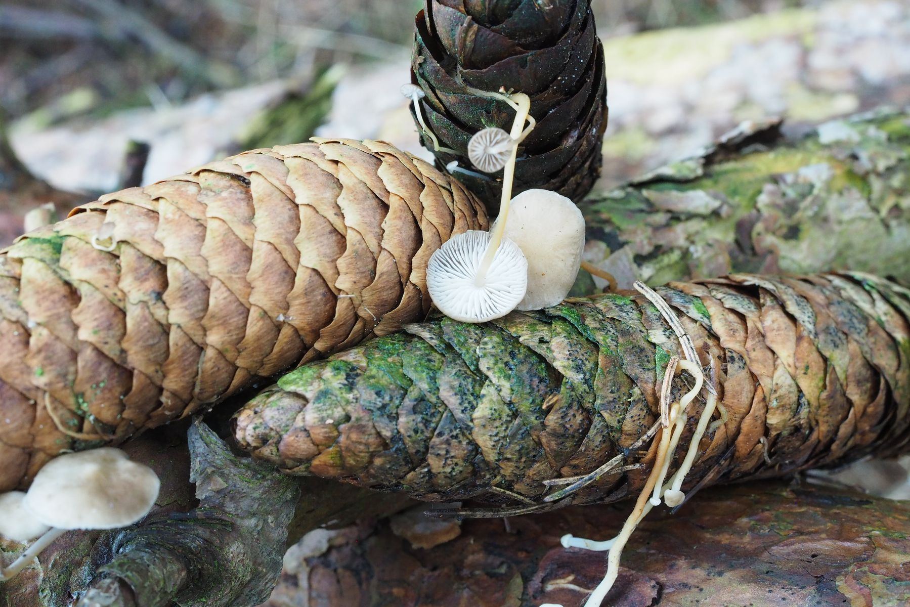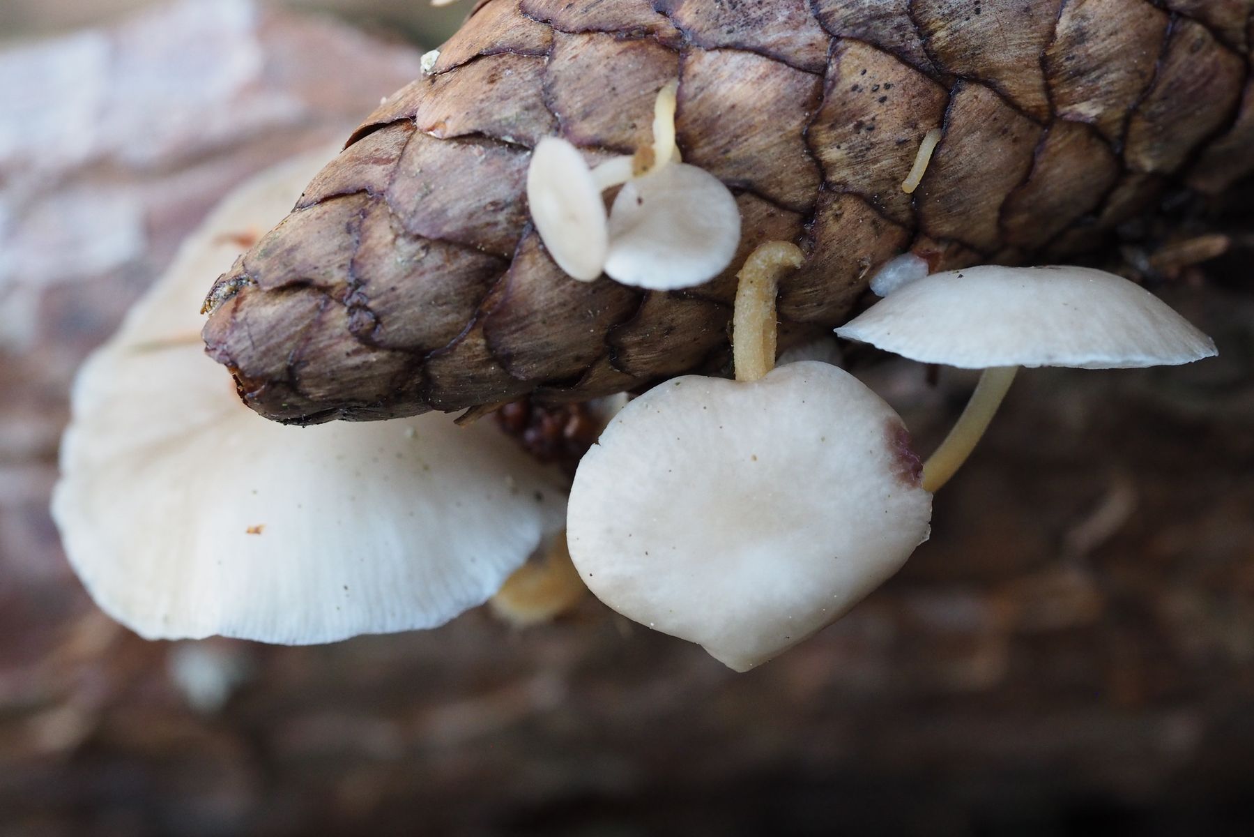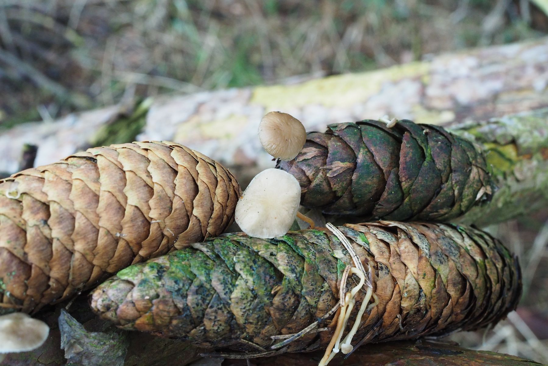 im Januar habe ich hier im Elbe-Weser-Dreieck einen kleinen weißen Pilz auf Fichtenzapfen fotografiert.
