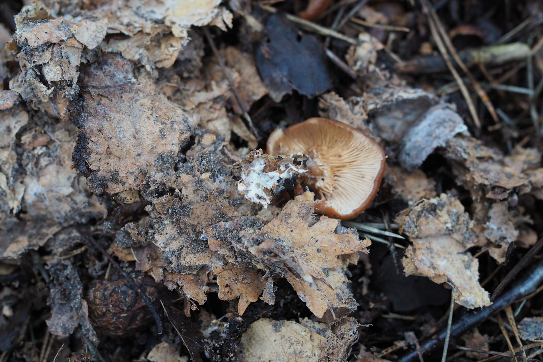 Bild 5: Pilz 1 mit weitgehend vom Laub befreiter Stilbasis