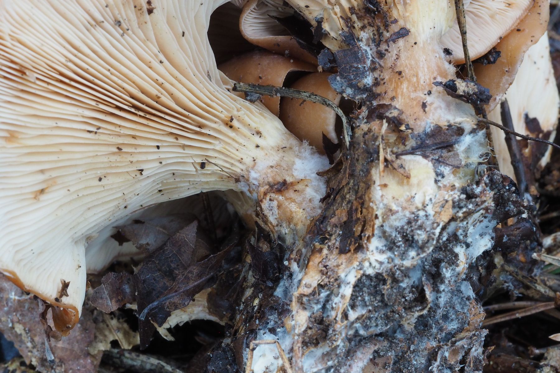 Bild 13: Die Stielbasis von Pilz 2, weitgehend vom Laub befreit
