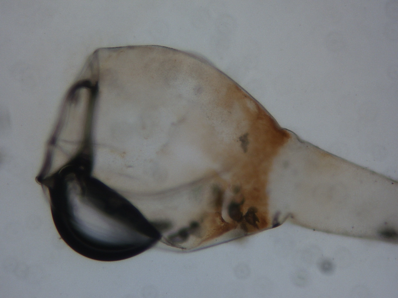 Die Hüllen der der Sporangien (von ausgereiften abgeschossenen Sporenkugeln) waren in Wasser grau (nicht schwarz) und strukturiert.
